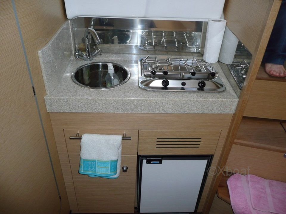 Interior Layout: The interior of the Zaffiro 32 is designed to offer maximum comfort and space. It features two cabins, including a master cabin with a double bed and a guest cabin with bunk beds. The bathroom is equipped with a shower and electric toilets. The salon is spacious and bright, with a well-equipped kitchen.
