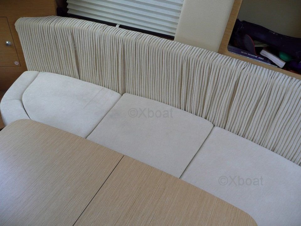Exterior Layout: The cockpit is spacious and well-thought-out, offering enough space to relax and navigate safely. The fore deck is accessible and secure, perfect for moments of relaxation. Deck equipment includes safety nets, deck seats, and navigation equipment.