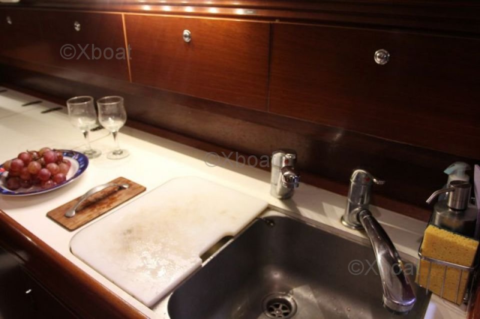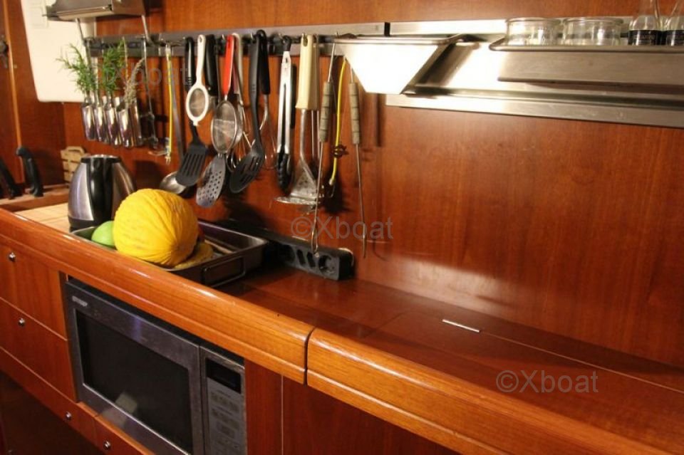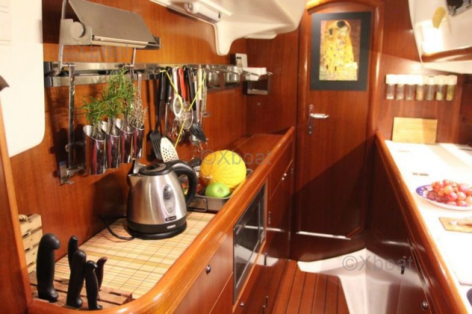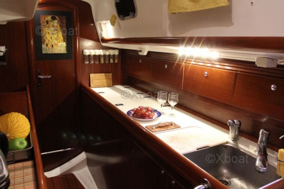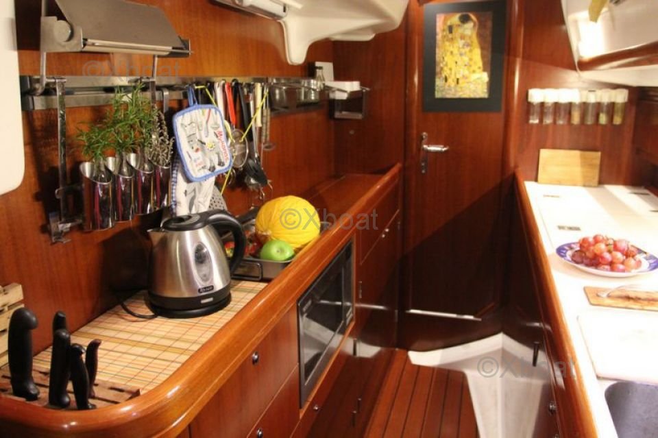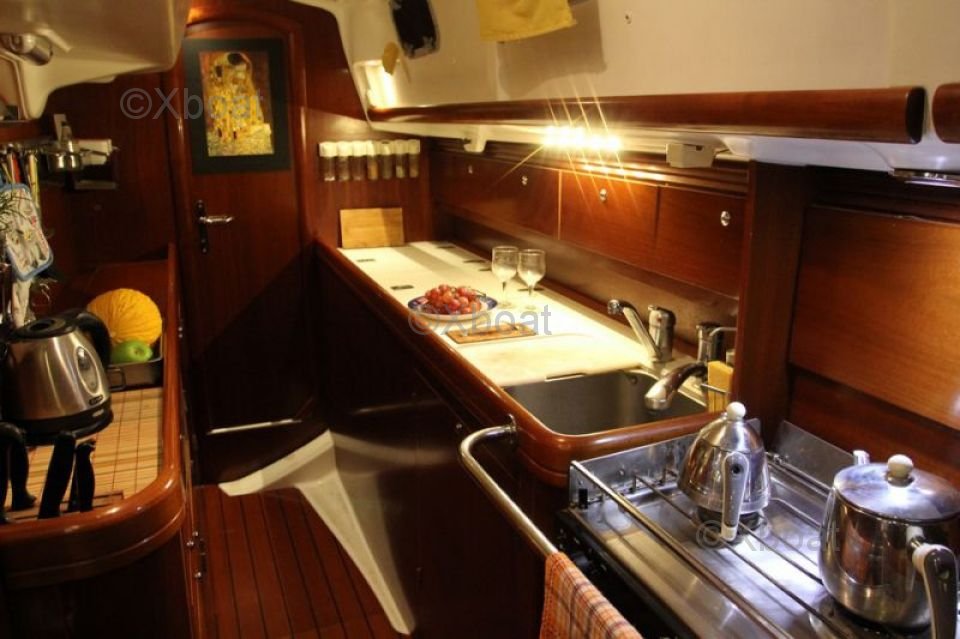 The interior of the boat is designed to offer maximum comfort, with spacious cabins, a well-equipped kitchen, and convivial living spaces. High-quality materials and ergonomic design make the Oceanis 42 CC a top choice for demanding sailors.