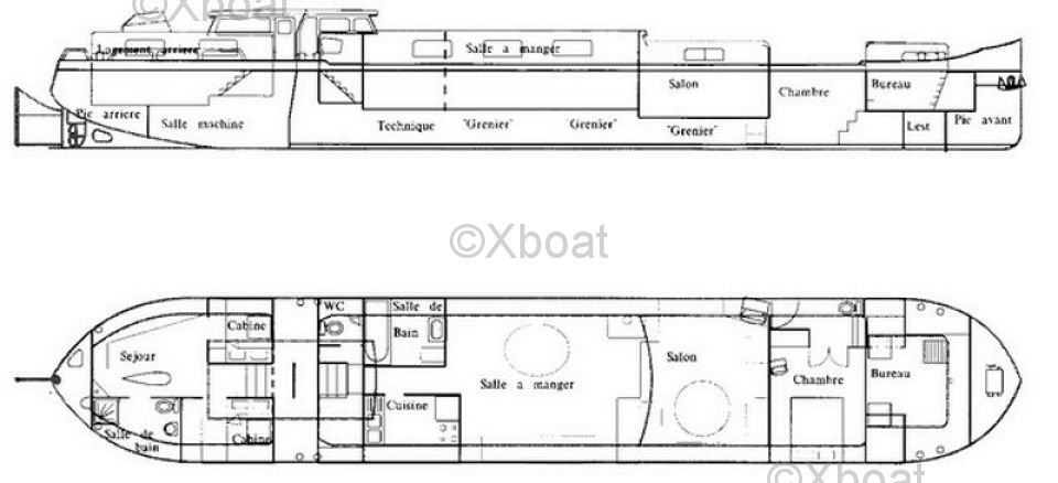 The Freycinet barge, built by Vandeville, is an iconic vessel known for its classic design and robustness. Designed to navigate inland waterways, this barge is particularly appreciated for its comfort and versatility.