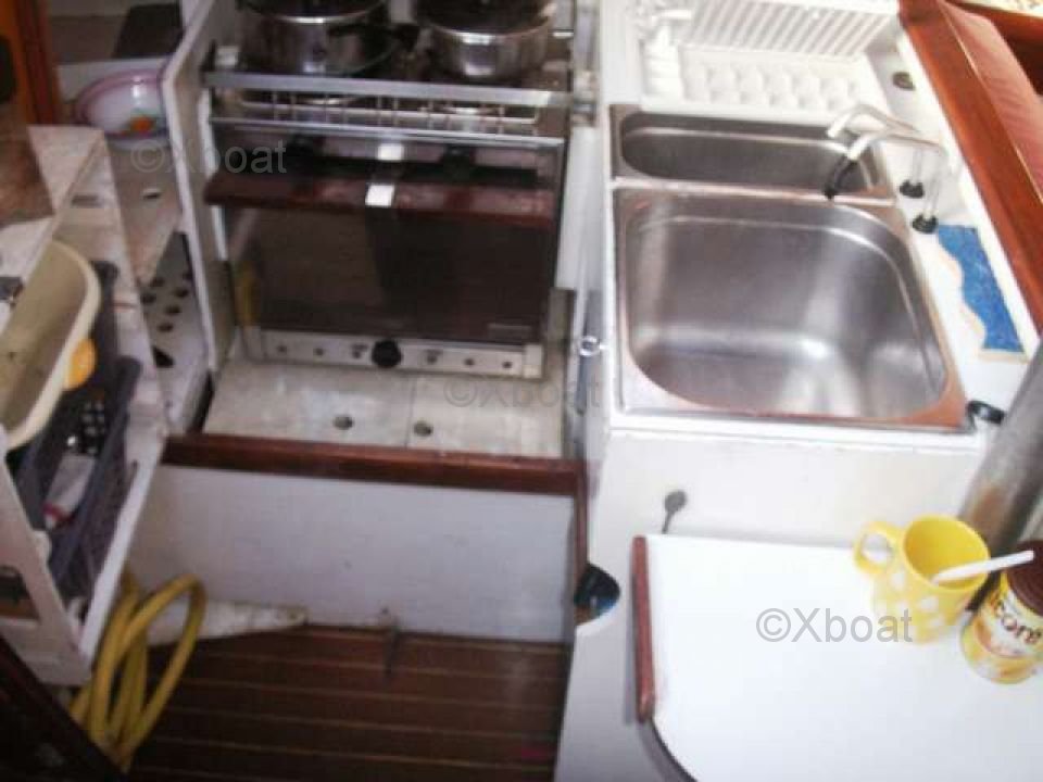Inside, the Thira 118 offers a comfortable living space with three cabins and six berths. The kitchen is well-equipped and the salon is spacious, providing a pleasant living area for long trips or family outings.