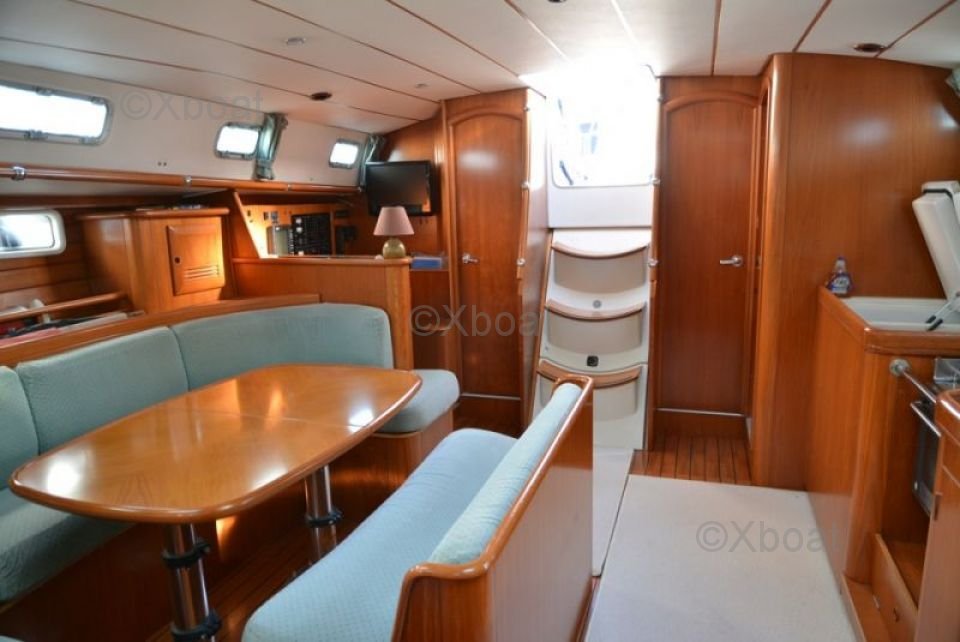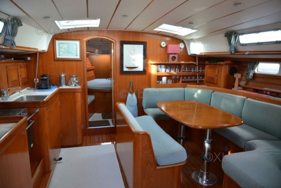 The interior of the Oceanis 461 is designed to offer maximum comfort. It features three double cabins, each equipped with clever storage and comfortable beds. The bathroom is spacious and well-equipped, with a separate shower. The salon is bright and offers a stunning view of the exterior thanks to its large windows.