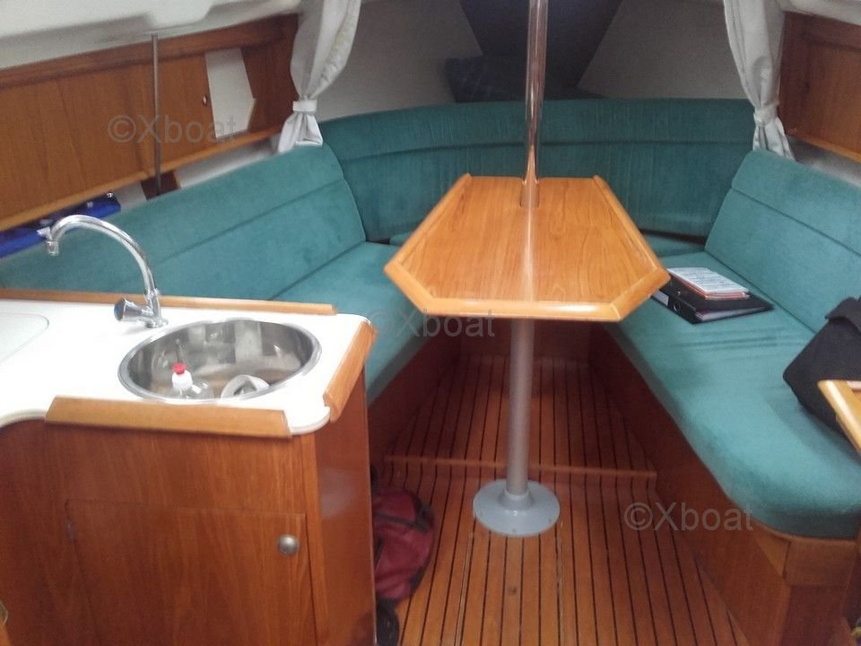 This sailboat is equipped with an aluminum mast and a mainsail and genoa made of Dacron, allowing for efficient and pleasant sailing. The lead keel provides good stability and excellent sea keeping.