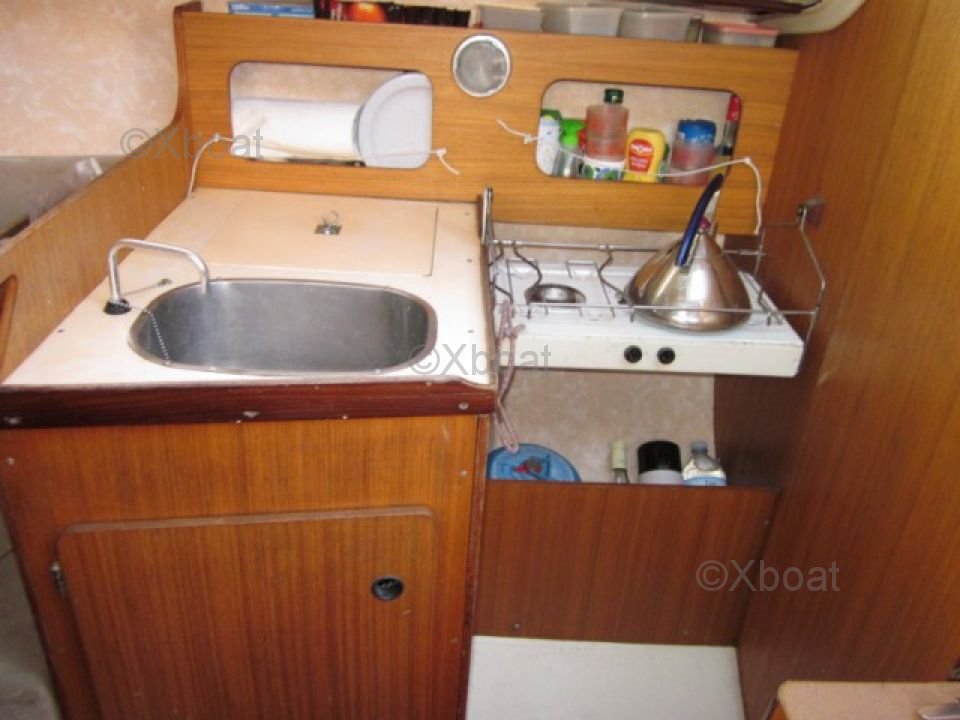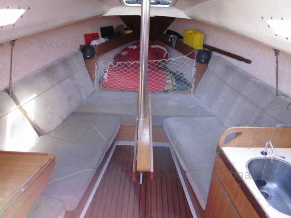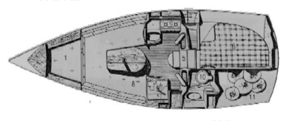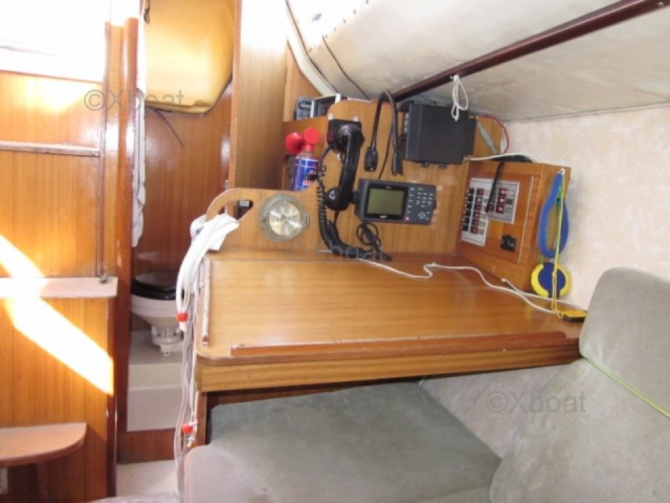 • Cabin: Comfortable living space with a chart table and convertible benches into berths.