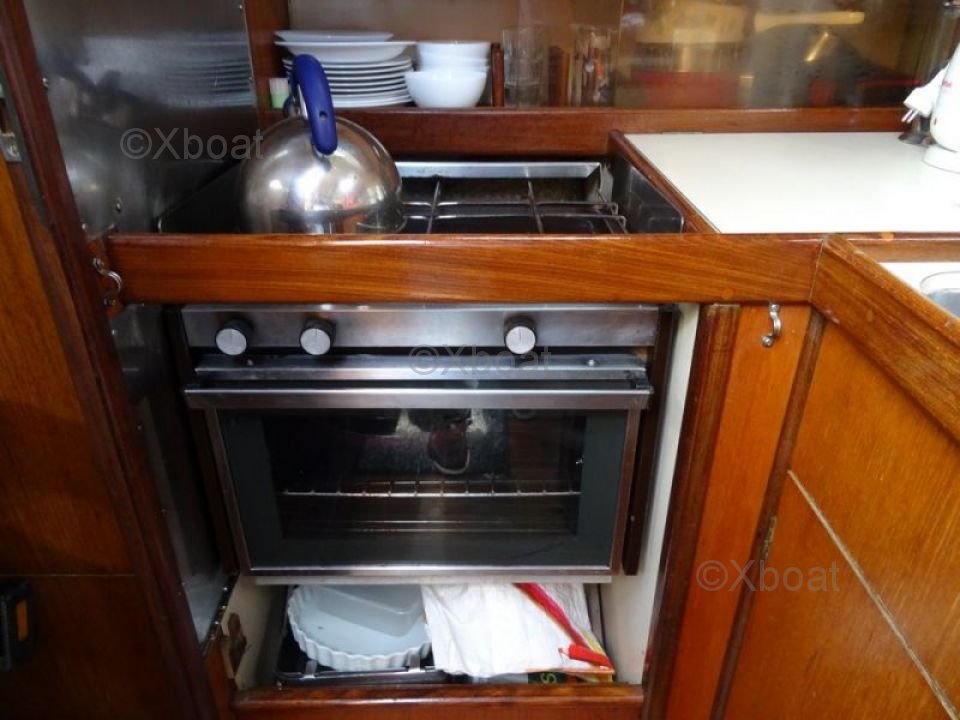 The Idylle 37 offers a spacious and well-designed interior, with two double cabins and one single cabin, ideal for accommodating up to six people. The galley is well-equipped with a sink, a refrigerator, and a gas stove. The bathroom is complete with a sink, a shower, and a toilet.