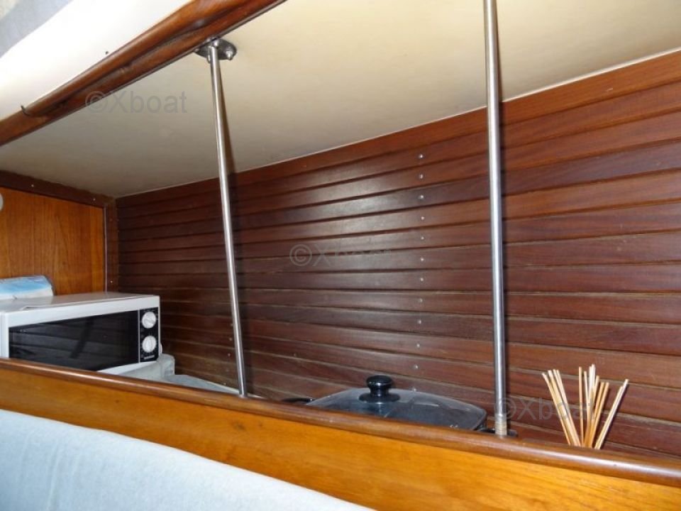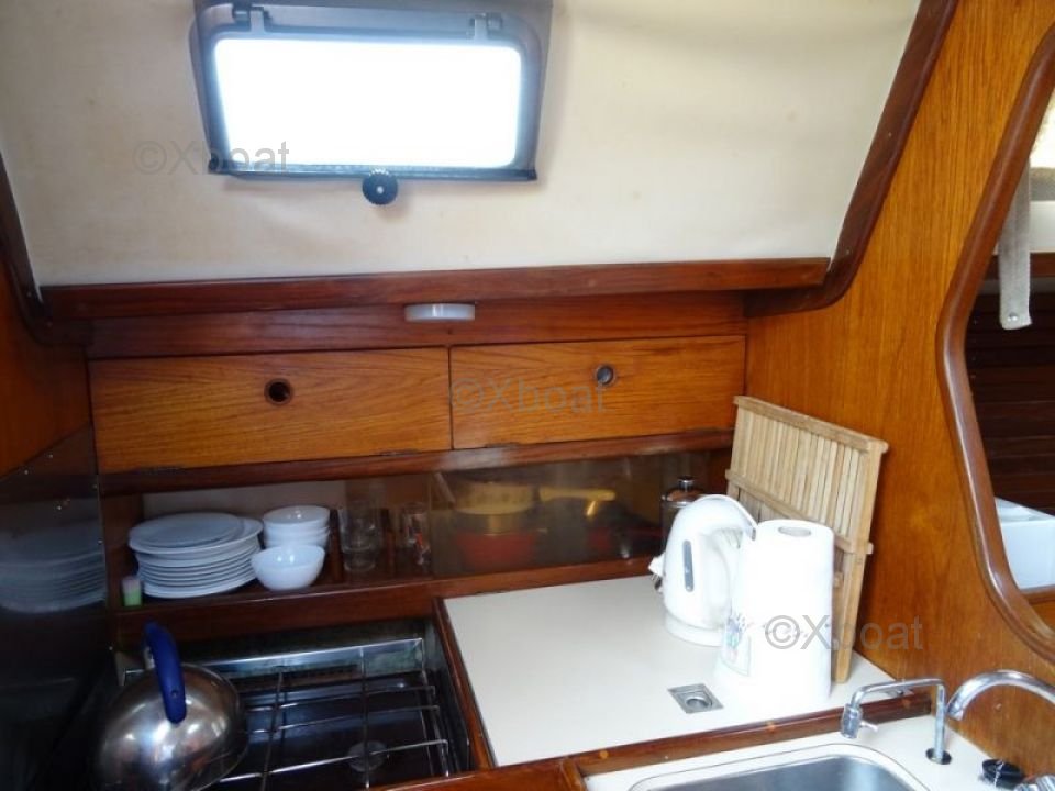 The Beneteau Idylle 37 is equipped with an auxiliary 25 HP diesel engine, offering good autonomy and easy handling. The boat is designed to be easy to maneuver, even for less experienced crews, thanks to its cutter rig and spade rudder.