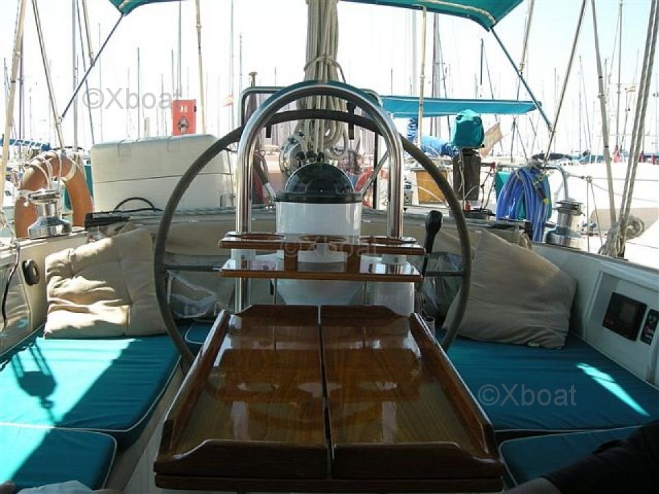 The cockpit is wide and well-protected, offering excellent visibility and optimal maneuvering space. The winches and controls are ergonomically placed for intuitive and efficient sailing.