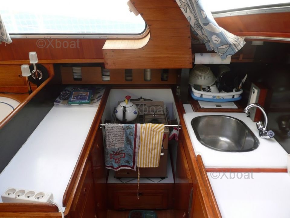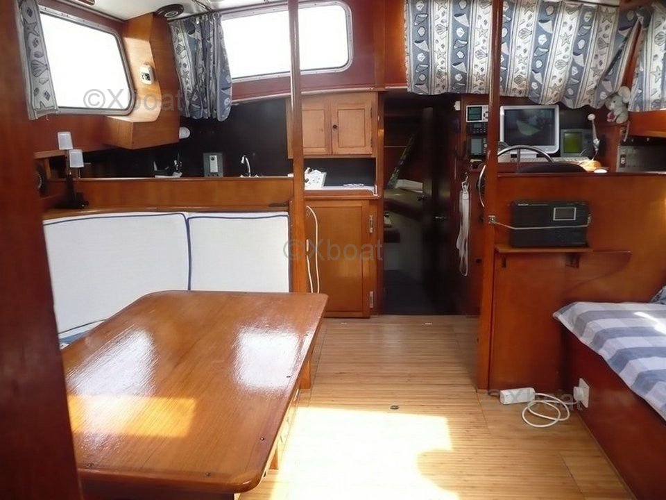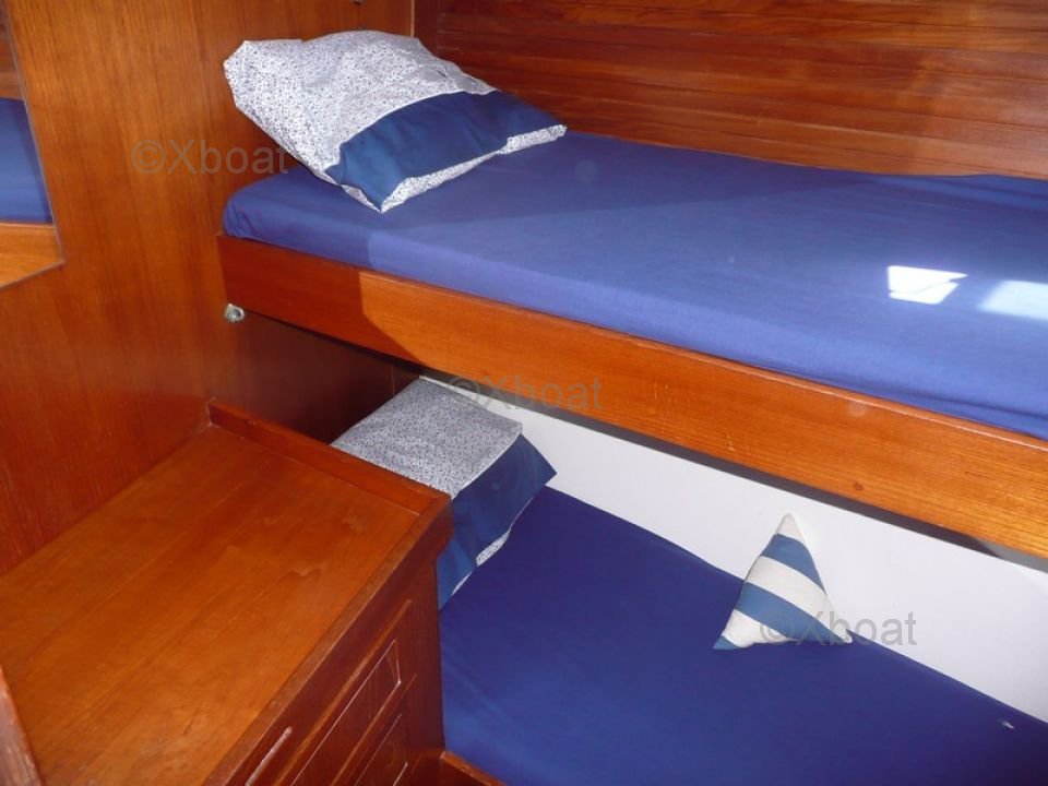 The Moody 42 is equipped with a spacious and well-designed interior, with comfortable accommodations for extended cruises. The main cabin offers a large double bed, while the guest cabins can accommodate several passengers. The galley is well-equipped and the saloon is bright thanks to numerous portholes.
