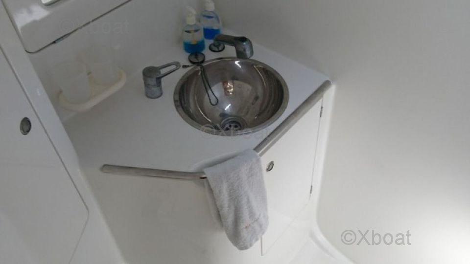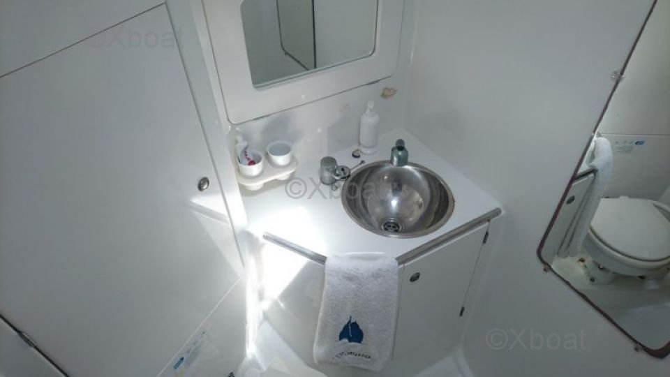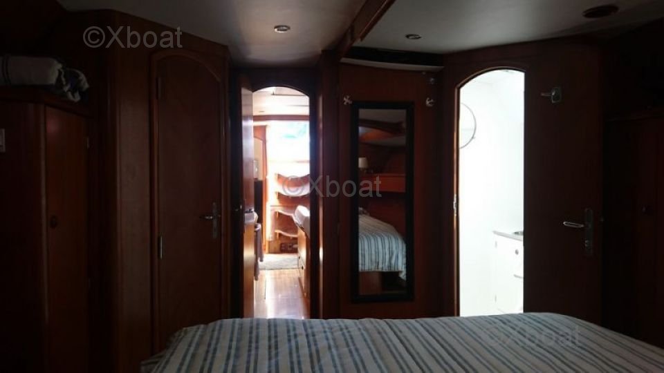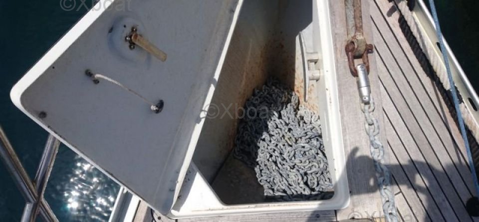 The auxiliary engine, typically a Yanmar 75 HP, ensures good propulsion when the wind is light or for maneuvering in the harbor.