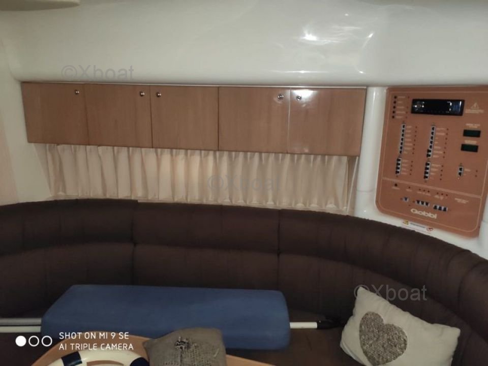 Comfort and Equipment: The spacious and well-designed cockpit of the GOBBI 345 SC is equipped with comfortable and adjustable seats, allowing for different configurations according to needs. The interior cabin offers a pleasant living space with accommodations for 4 people, a fully equipped kitchen, and a complete bathroom.