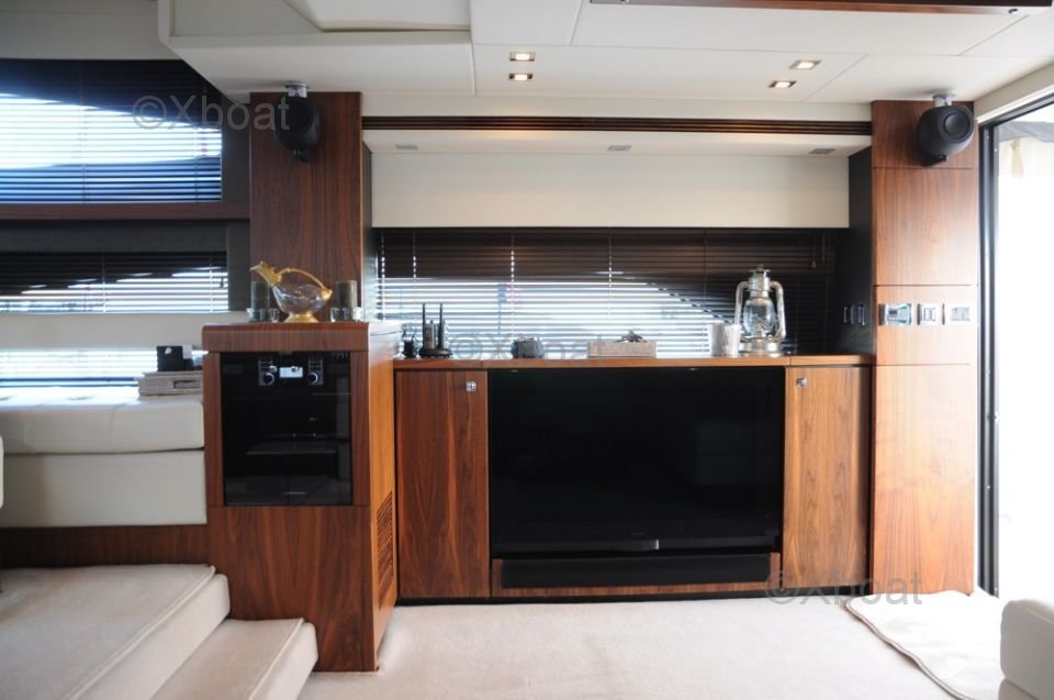 The Fairline Squadron 58 is a versatile yacht, ideal for long cruises as well as family or friends outings. Its sophisticated design and exceptional performance make it an essential choice for luxury sailing enthusiasts.