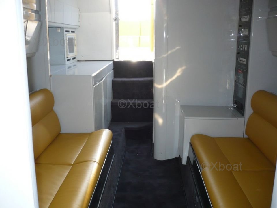 Interior Amenities: The Benetti 45 Offshore offers a spacious and luxurious interior, with high-quality materials and modern design. The cabins are equipped with comfortable beds, private bathrooms, and ample storage. The main salon features a large living space with sofas, a dining table, and a bar, offering a stunning view of the outside.