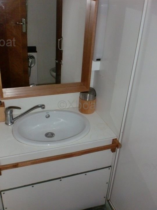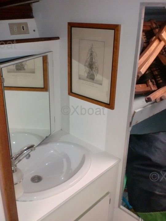 The Ketch Chaitane is designed to offer a comfortable and safe sailing experience. Its reinforced polyester hull ensures great resistance and good seaworthiness. The boat is equipped with a Yanmar 4JH2E 45 HP engine, providing reliable and efficient propulsion. The generous sail area allows for optimal performance, whether close-hauled or reaching.
