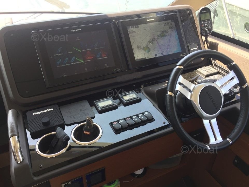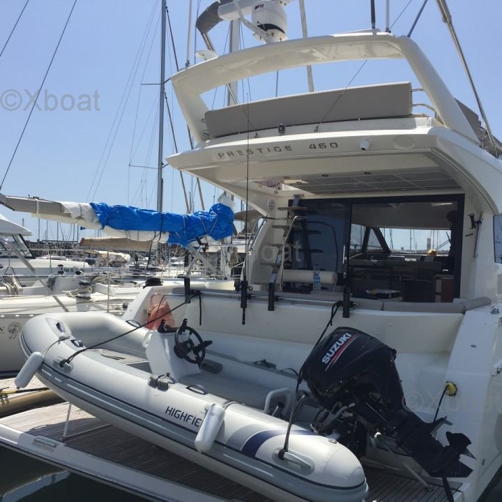 Electronics and equipment: The Prestige 460 Flybridge is equipped with modern navigation systems, including a GPS, sonar, radar, and an autopilot. It also features integrated entertainment systems, such as a hi-fi system and a television, for relaxing moments on board.