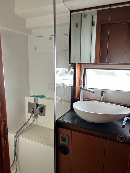 Interior layout: This yacht features three cabins, including an owner's suite at the bow with a double bed and a private bathroom. The other two cabins, located at the stern, can be configured with single or double beds. The salon is spacious and bright, with large windows offering an unobstructed view of the exterior.