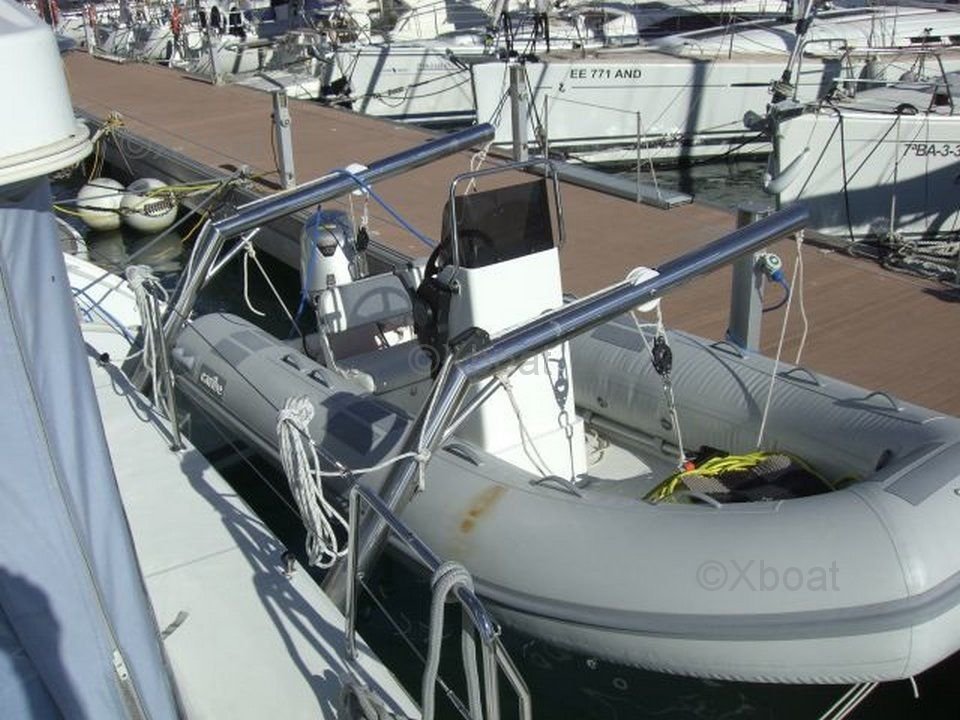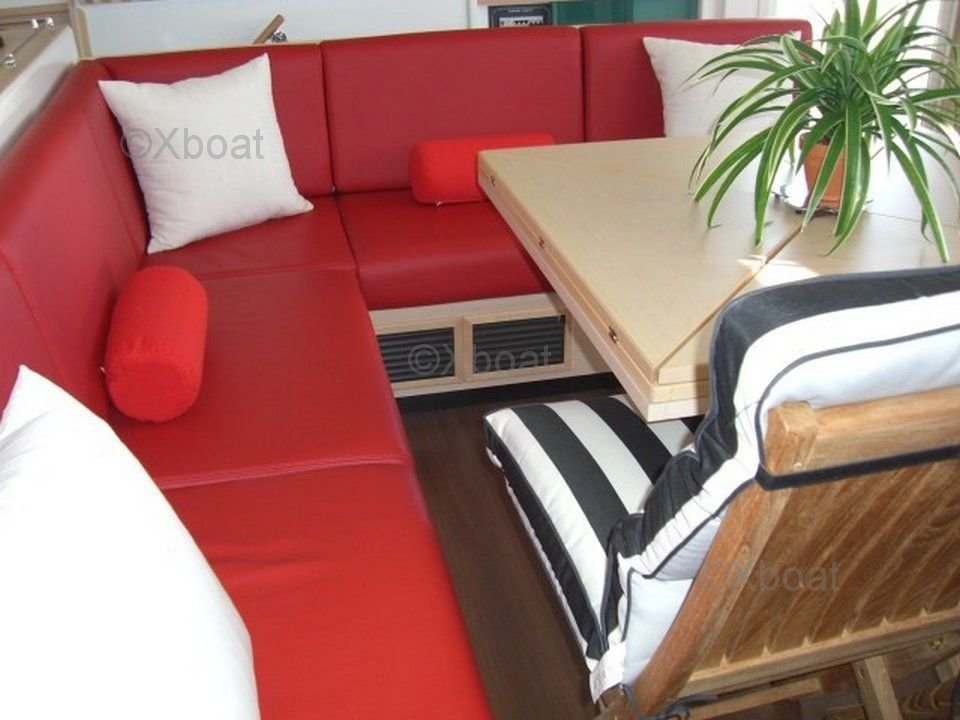 The spacious and well-protected cockpit is perfect for maneuvers and relaxation. The deck is designed to facilitate movement and sailing operations, with direct access to the various maneuvering points.