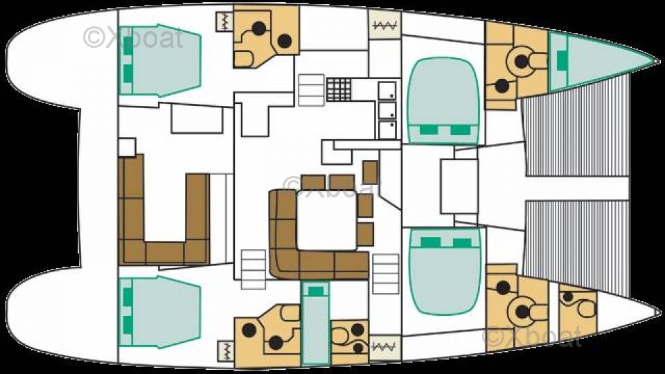 The Lagoon 500 is equipped with two Yanmar 54 HP diesel engines, providing reliable and efficient propulsion. The boat has four double cabins, each with its own sanitary facilities, ensuring optimal comfort for large crews.
