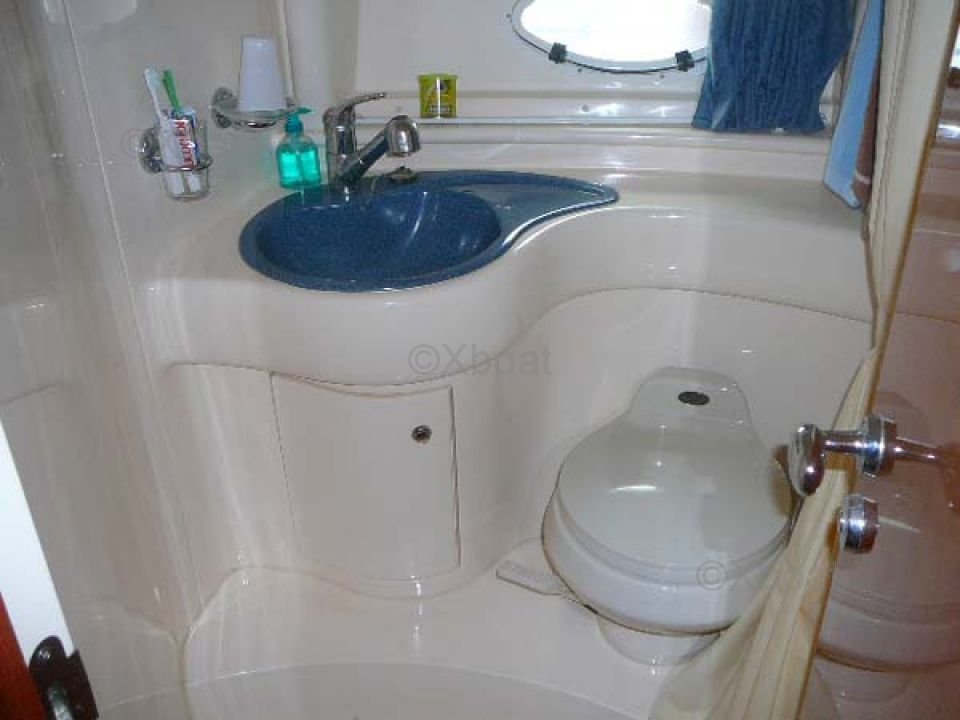 Interior Layout: The boat has two double cabins, each offering optimal comfort for passengers. The main cabin is equipped with a double bed, while the guest cabin has two single beds. The bathroom is spacious and includes a separate shower.