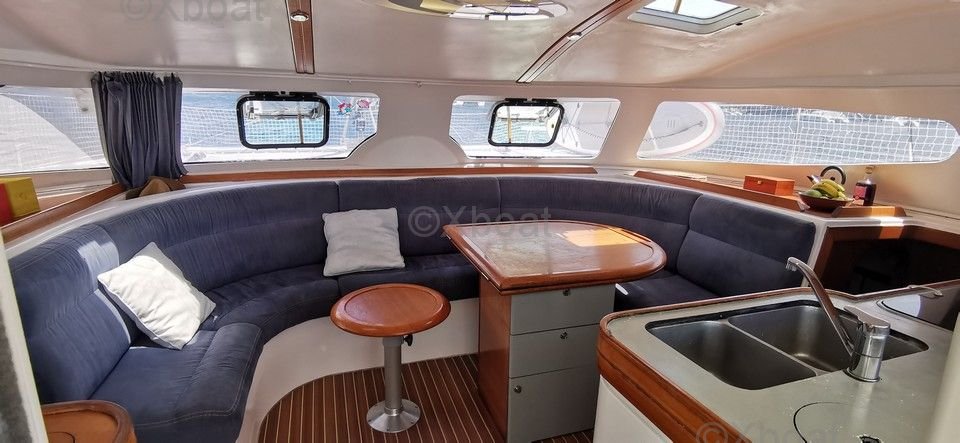 Inside, the Nautitech 40.2 offers a spacious and bright living area thanks to its large windows and open deck. The cabins are comfortable and well-appointed, providing optimal privacy and comfort for long voyages. The kitchen is equipped with all necessary appliances to prepare complete meals, and the salon is designed for moments of relaxation and conviviality.