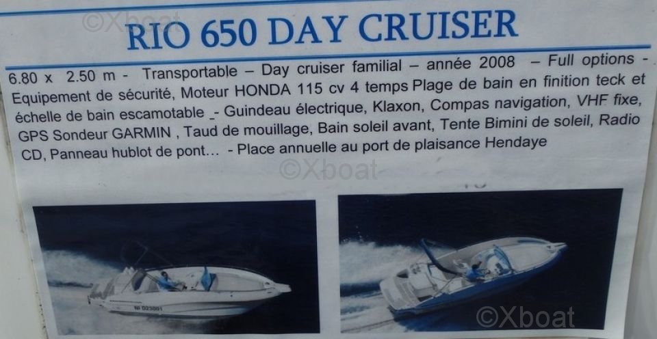 The Rio 650 Day Cruiser is an elegant and versatile day boat, designed to offer pleasant and comfortable nautical experiences. Manufactured by Rio, this boat is ideal for family outings or get-togethers with friends, thanks to its numerous features and careful design.