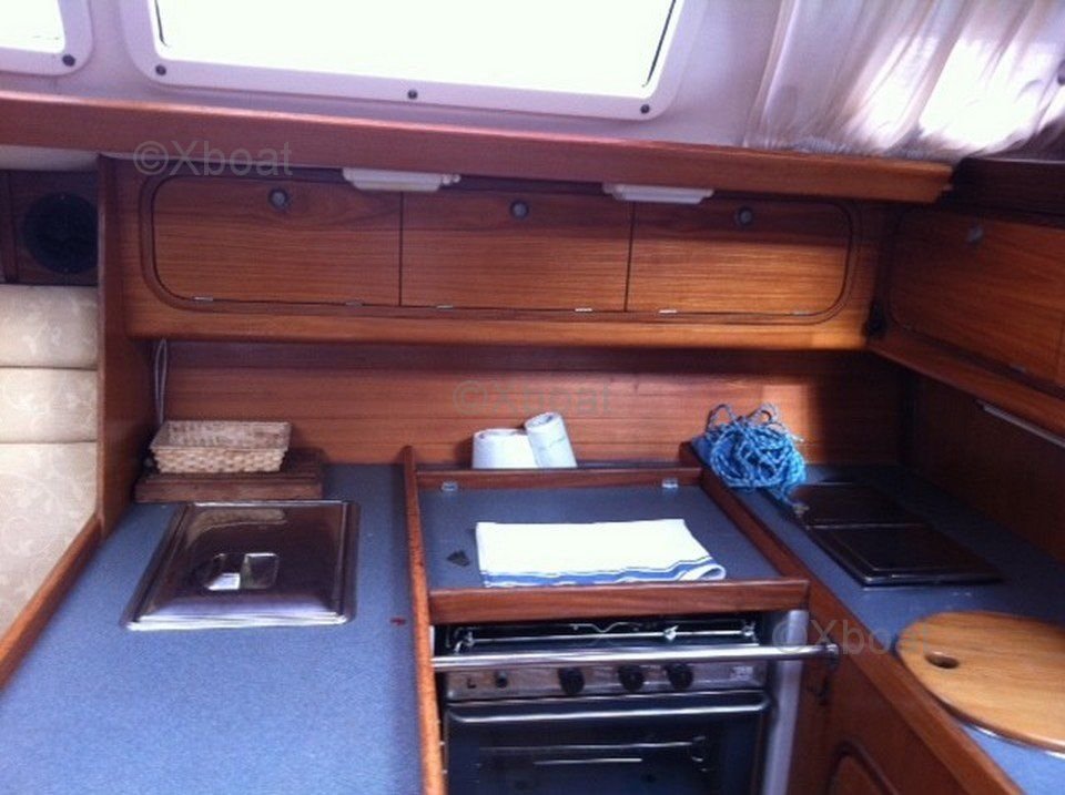 The Gib'Sea 42 Master is equipped with an inboard diesel engine, usually a Yanmar or a Perkins, offering 50 to 60 horsepower. This sailboat has three double cabins, providing optimal comfort for long cruises. The galley is well-equipped with a sink, a refrigerator, and an oven.