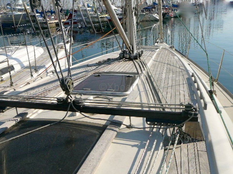 This sailboat is also equipped with modern navigation systems, including a GPS, sonar, and VHF, ensuring safe and precise navigation. Safety equipment, such as life jackets and life rafts, are also present to guarantee the safety of the crew.
