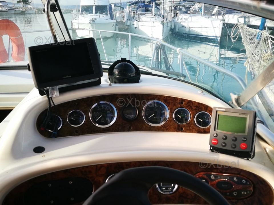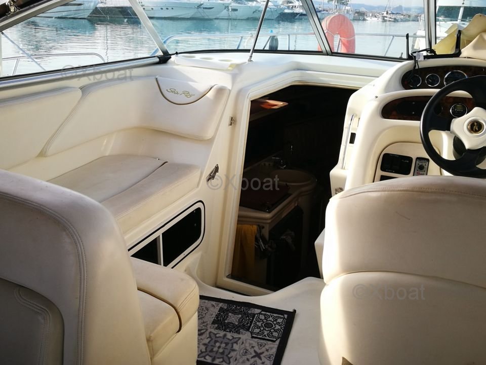 Safety and Navigation: The Sea Ray 275 Sundancer is equipped with numerous safety devices, including fire extinguishers, life jackets, and navigation lights. The dashboard includes essential navigation instruments, such as a compass, speed indicator, and sonar.