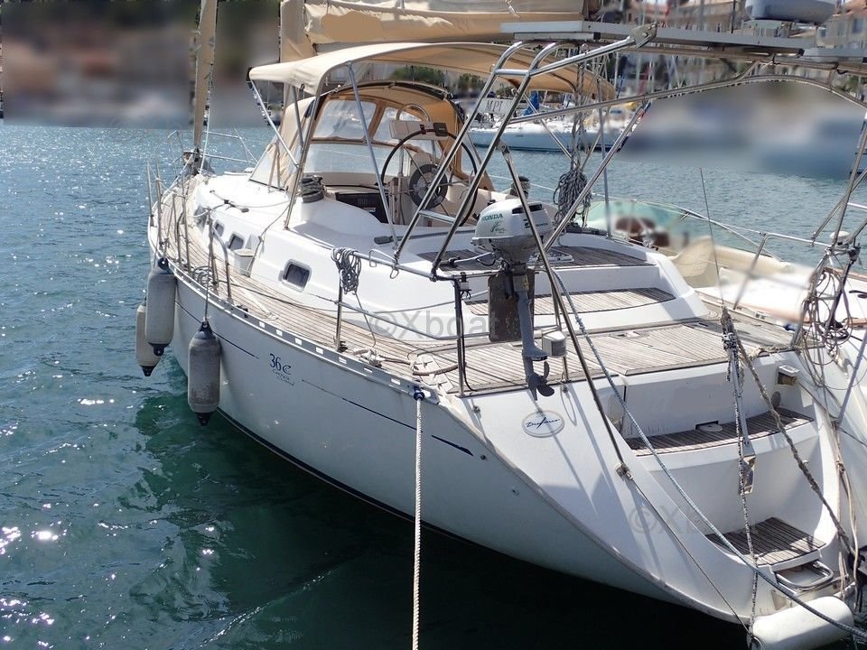 Dufour 36 CC is a cruising sailboat designed by the renowned shipyard Dufour, known for its elegant and high-performance boats. This model is particularly appreciated for its balance between comfort and performance, making it an excellent choice for demanding sailors who are also concerned about their onboard well-being.