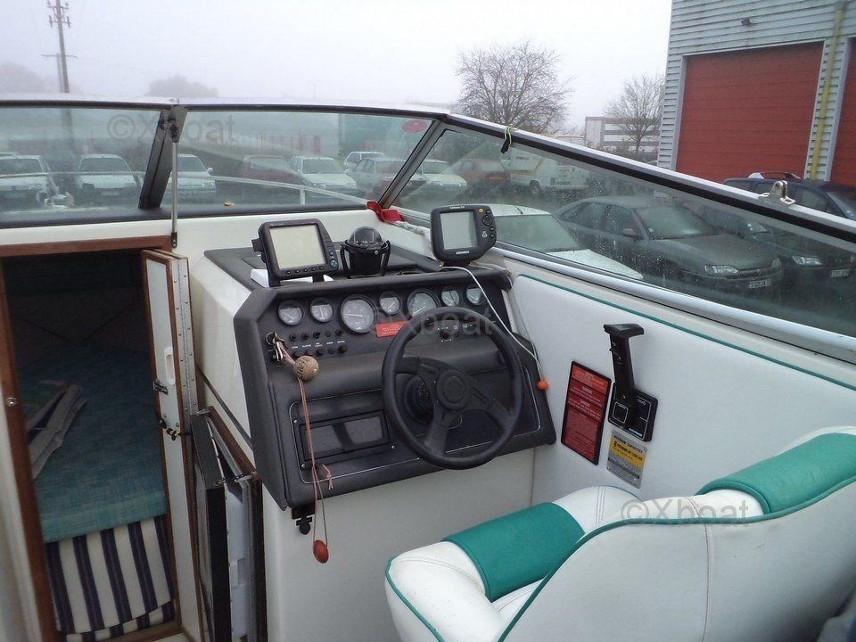 Comfort and Equipment: This boat features a spacious cockpit with comfortable seats and an ergonomic dashboard. Inside, a well-appointed cabin offers sleeping space for two people, ideal for overnight stays. Standard equipment often includes a refrigerator, a sink, and clever storage solutions.