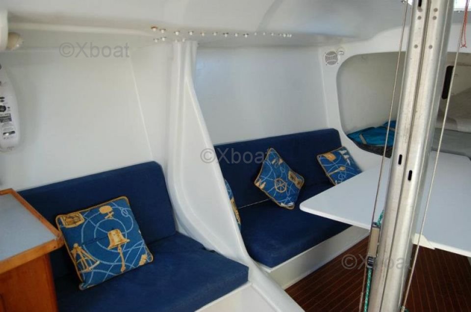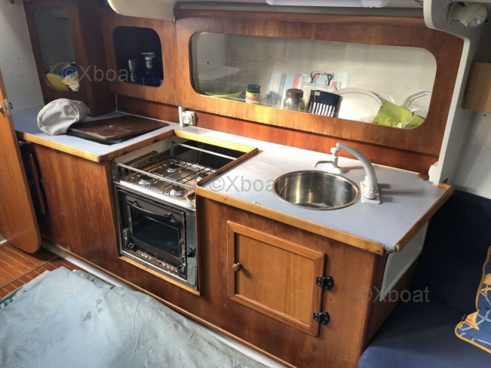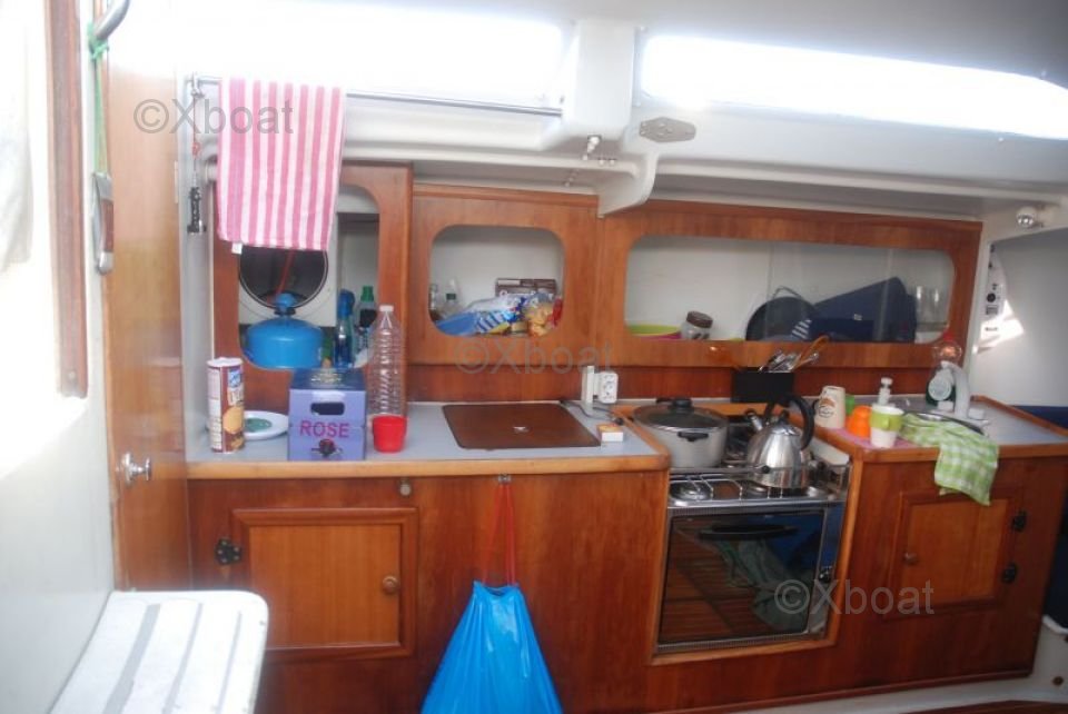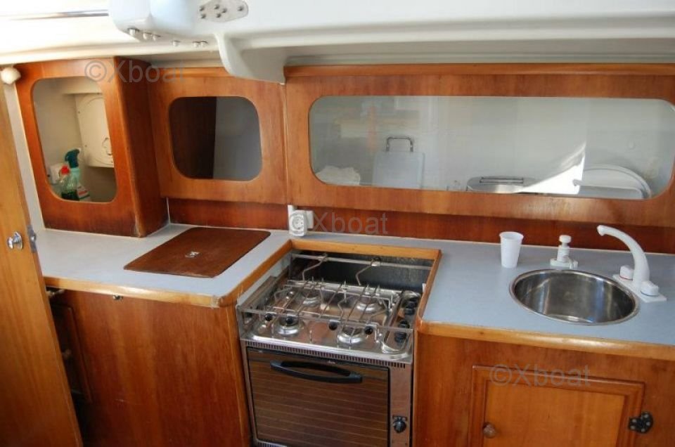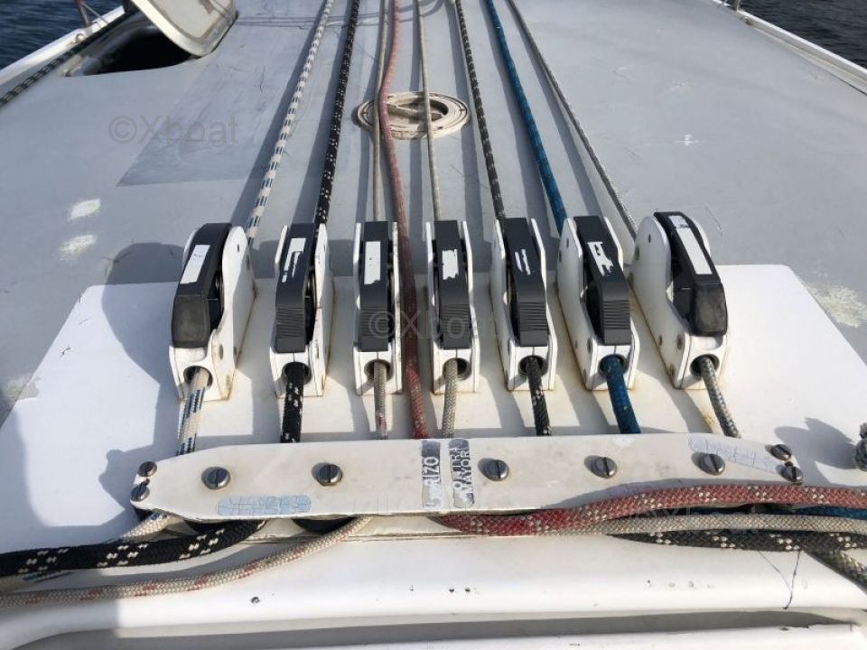 On deck, the boat is equipped with high-performance winches, a spacious cockpit, and a protective roof, providing a pleasant and secure sailing experience. The aluminum mast and rigging systems are designed for optimal performance and ease of maintenance.
