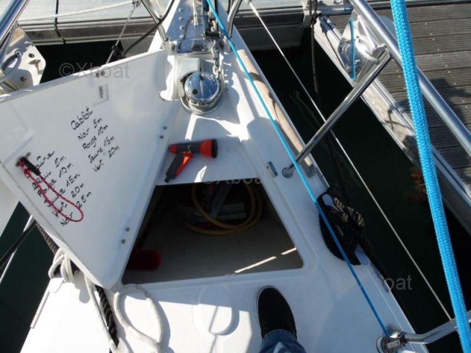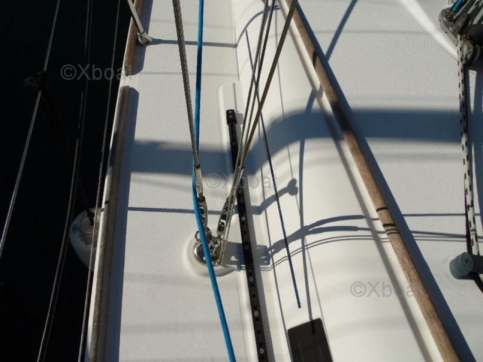 The Dufour 34 PTE is equipped with a head sail rigging system that allows for easy maneuvering. The well-balanced sail plan offers excellent performance in all wind conditions, whether close-hauled or reaching. The rudder provides precise steering.