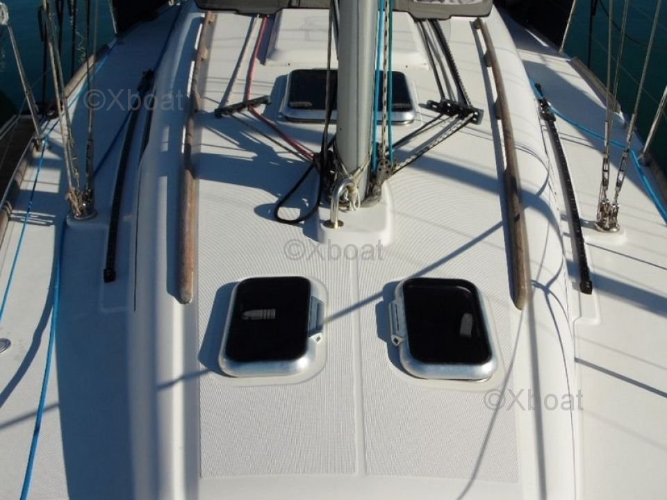 The Dufour 34 PTE is built with a polyester hull reinforced with fiberglass, offering excellent resistance and long-lasting durability. The long keel ensures great stability and good sea keeping, while the teak deck provides an elegant aesthetic and a non-slip surface.