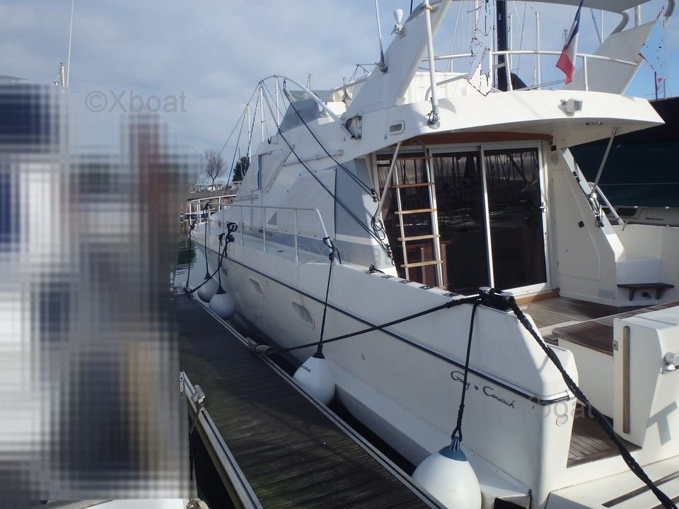Equipment and Technologies: The Guy Couach 1401 Fly is equipped with the latest technologies in navigation and comfort. It includes a stabilization system at anchor and under way, central air conditioning, a video surveillance system, and state-of-the-art entertainment equipment.