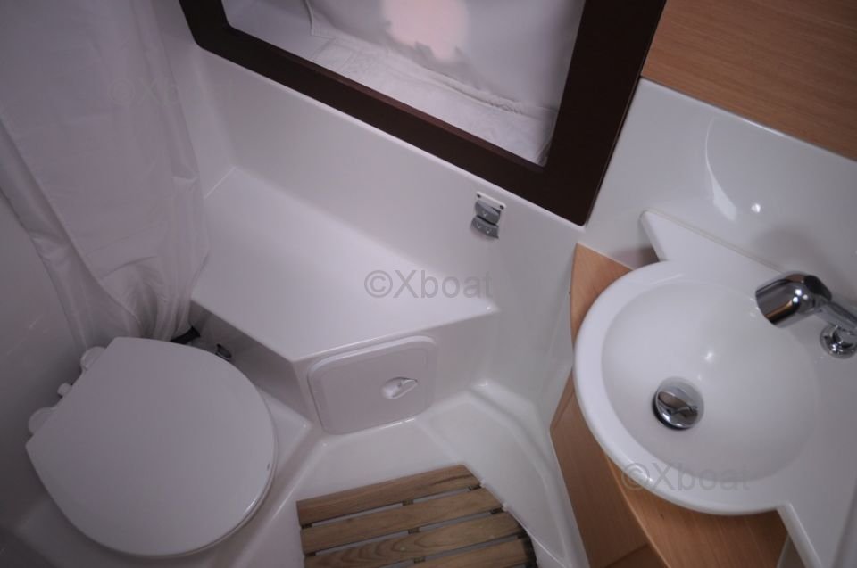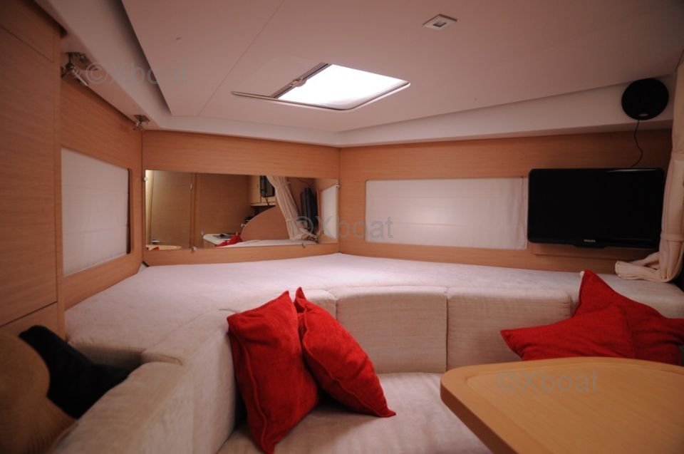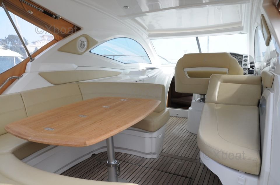 Interior Layout: The boat's interior is spacious and comfortable, with high-quality finishes. It features two cabins, each with double beds, as well as a full bathroom with a shower. The main salon is bright and offers an unobstructed view of the outside thanks to large windows.