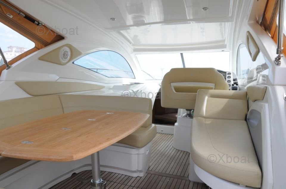 Deck Equipment: The deck is equipped with a hard-top providing protection from the elements while allowing for easy movement. It also features an outdoor dining area, a sun lounger at the bow, and comfortable seats for relaxation.