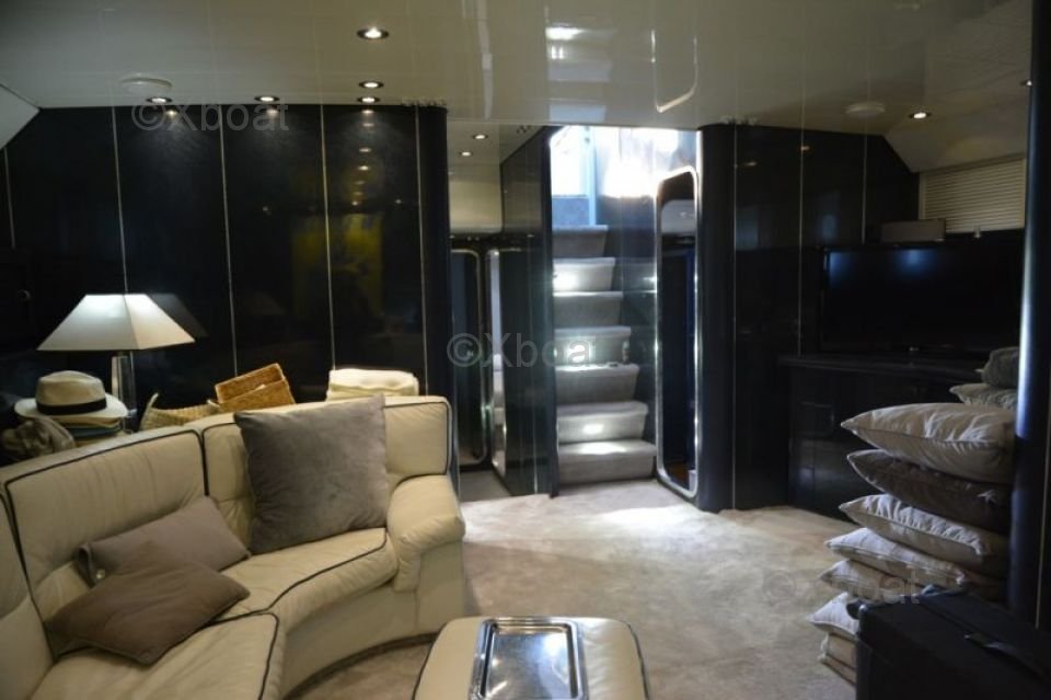 Dimensions and Construction: The Leopard Sport 70 measures approximately 21.34 meters in overall length, with a beam of 5.82 meters and a draft of 2.74 meters. Its robust construction in fiberglass and composite ensures exceptional durability and resistance, even in the most demanding marine conditions.