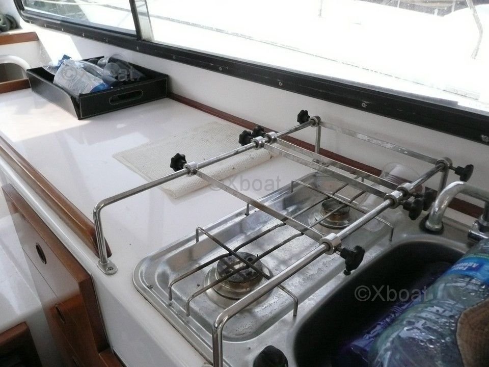 The CATA 34 is equipped with two double cabins, offering comfortable living space for up to 4 people. The kitchen is well-equipped with a sink, a refrigerator, and a gas stove. The spacious cockpit is perfect for outdoor meals and relaxation.