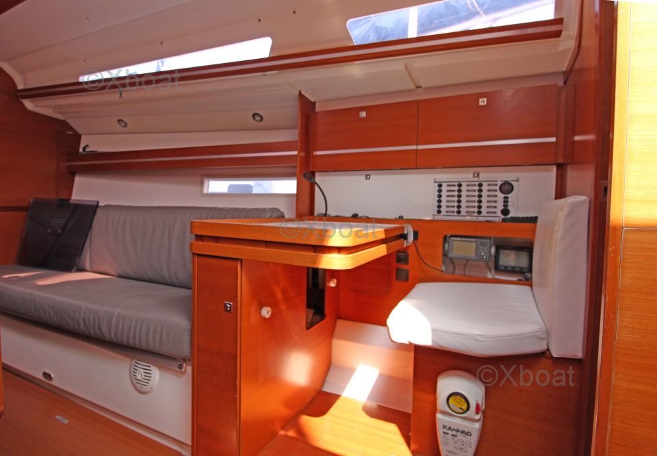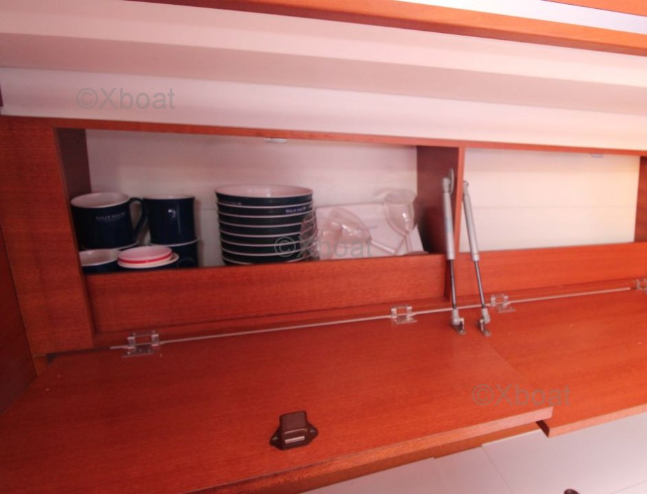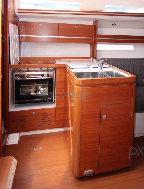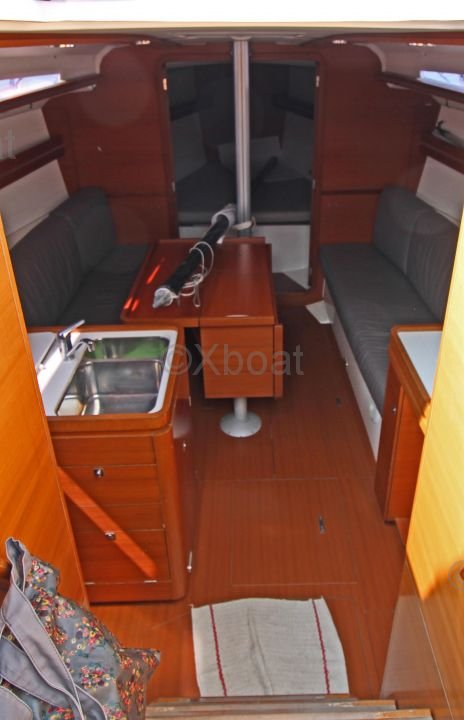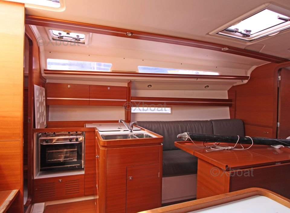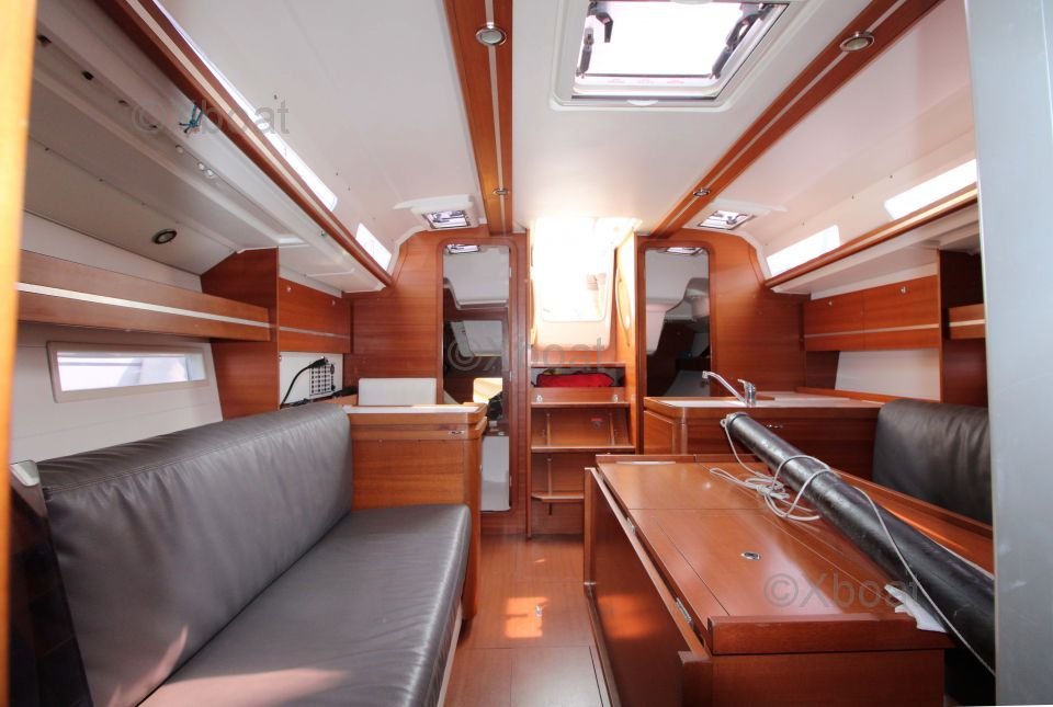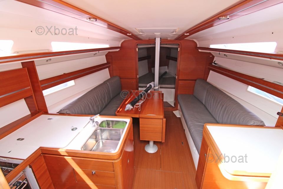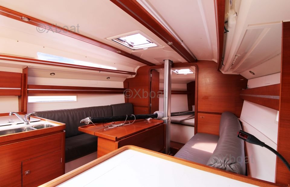 The Dufour 36 Performance offers a spacious and well-designed interior with high-quality finishes. The boat is equipped with 6 berths distributed in 2 double cabins and a forward cabin. The galley is functional and well-equipped, while the salon is bright and convivial.