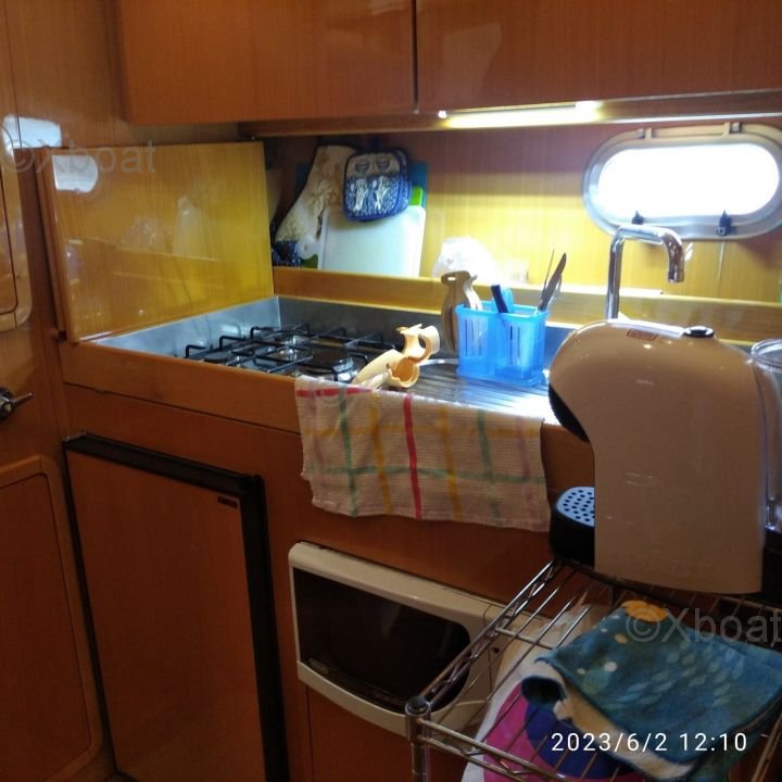 My Raffaeli Typhoon is particularly interesting for several reasons. First, it benefits from recent improvements such as the 2023 antifouling, the new berth mattresses, the extended forward berth, and the kitchen extractor hood. Additionally, its Volvo Penta D3-130 engines are reliable and powerful, ensuring safe and pleasant navigation. Finally, the generous headroom in the salon and cabins offers a comfortable living space, ideal for extended sea outings.