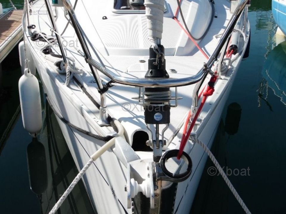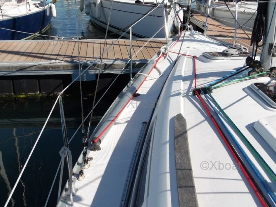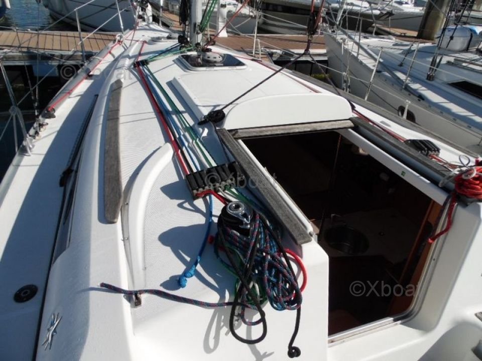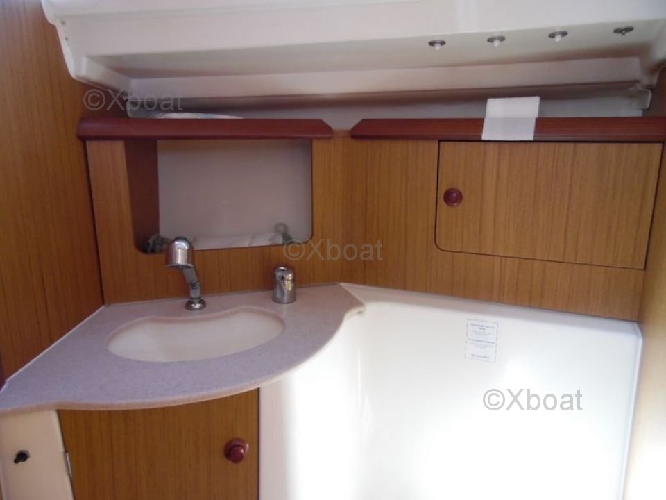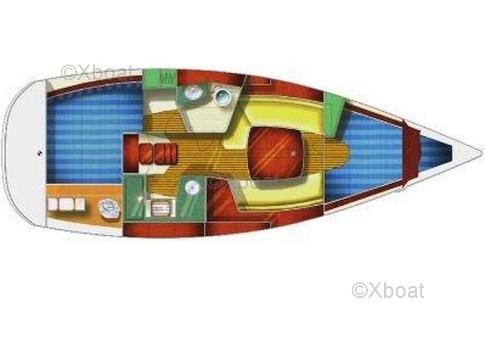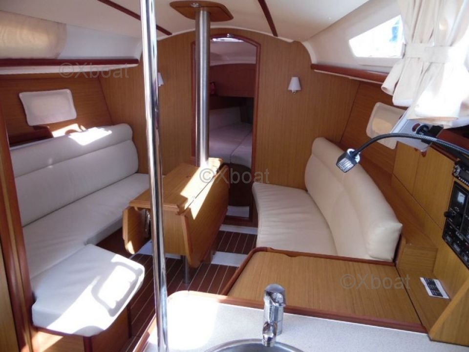 The Sun Odyssey 32i is equipped with a spacious and ergonomic cockpit, offering excellent visibility and easy access to controls. The deck is well-designed to facilitate maneuvers and movements on board. Inside, the boat offers a comfortable living space with a main cabin, a well-equipped kitchen, and a functional bathroom.