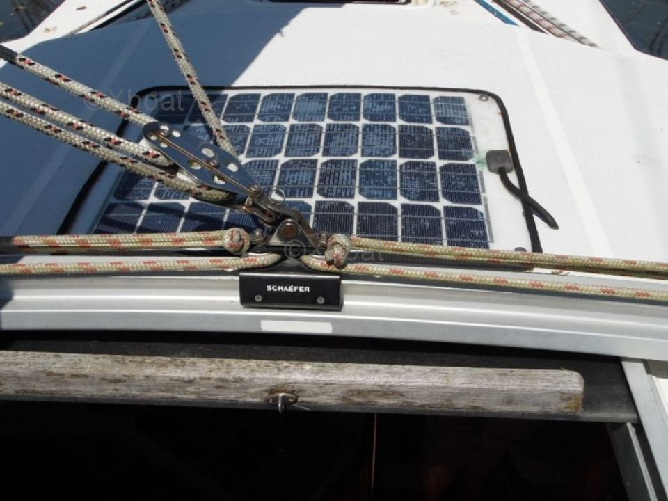 The Hunter Legend 35.5 is built with a fiberglass hull, offering robustness and durability. Its deck is also made of fiberglass, with wide deck surfaces and easy access to the different compartments of the boat. The lead keel ensures good stability and excellent sea keeping.