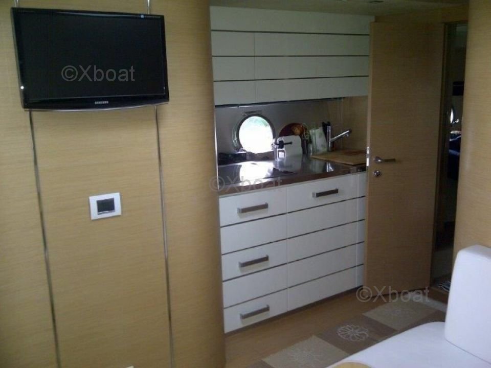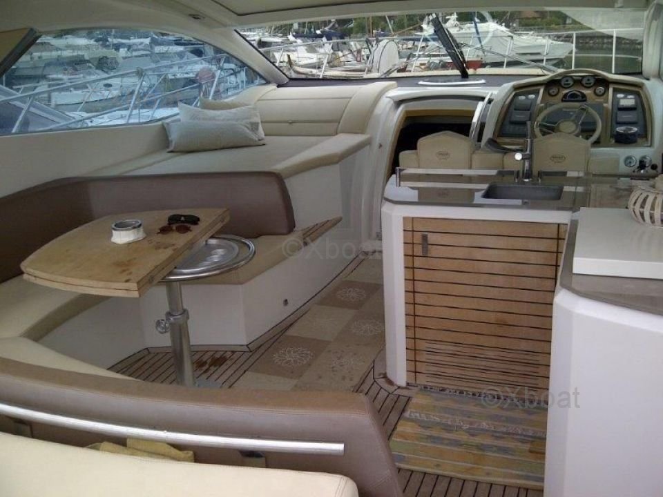 The interior of the Sessa C46 is designed for luxury and comfort. It features three cabins, including an owner's suite at the bow, two guest cabins, and a full bathroom. The salon is spacious and bright, with large windows offering a stunning view of the outside.