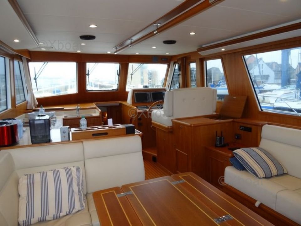 Interior Layout: The interior of the Grand Banks 41 EU is designed to offer maximum comfort. It features three cabins, including a master cabin with a double bed, a guest cabin, and a single cabin. The bathroom is equipped with a separate shower and an electric toilet. The salon is spacious and well-lit, with a kitchen equipped with all necessary appliances for extended voyages.
