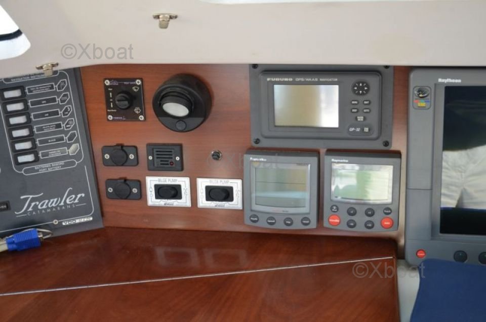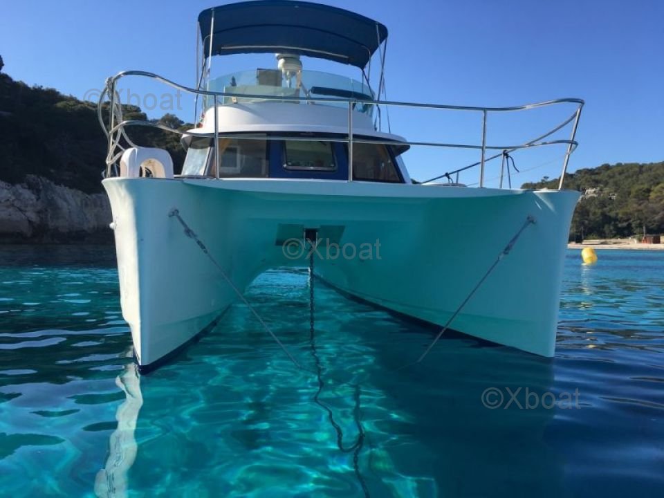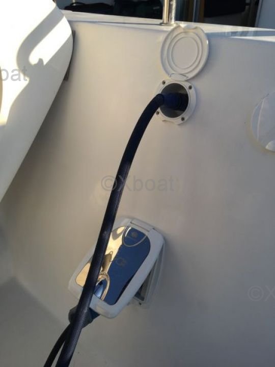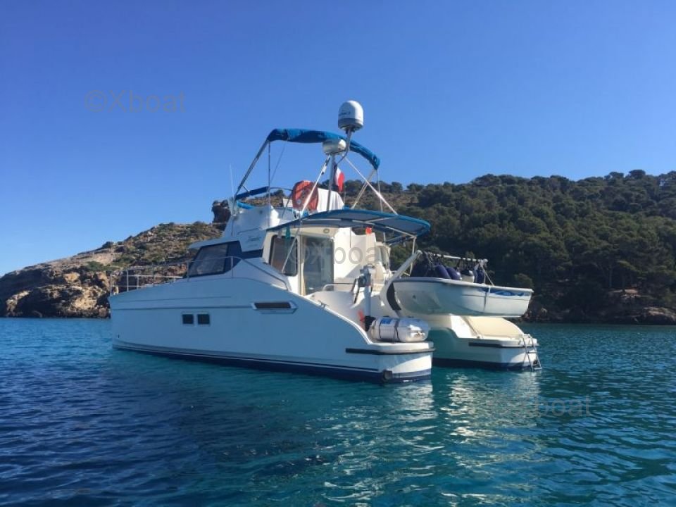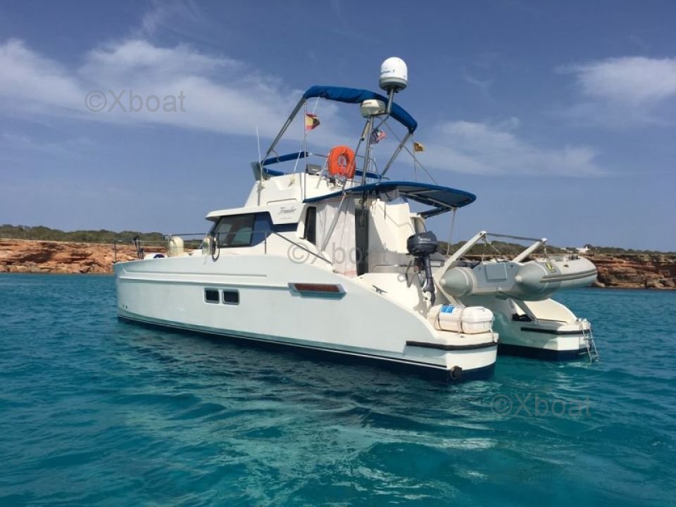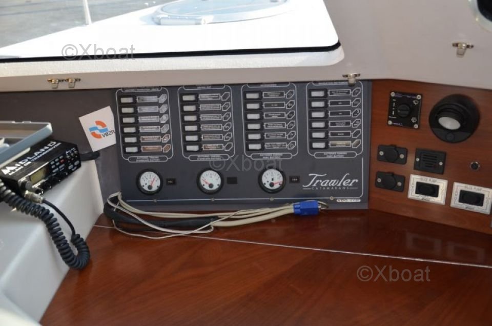 Thanks to its robust construction in fiberglass-reinforced polyester, this catamaran is both lightweight and resistant, making it an ideal choice for navigating in shallow waters. The 20 HP engines ensure reliable and economical propulsion, allowing for comfortable cruising at 7 knots.