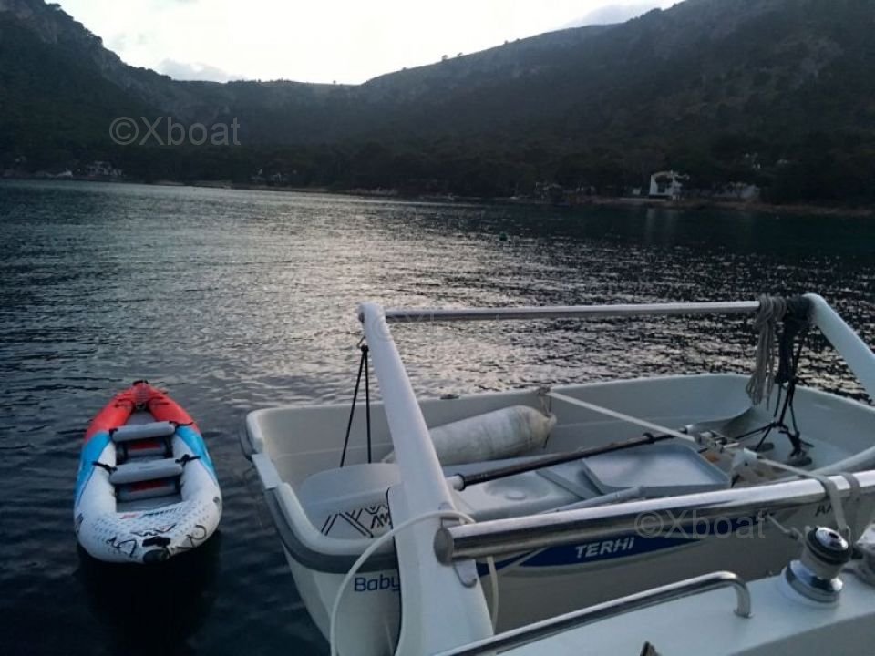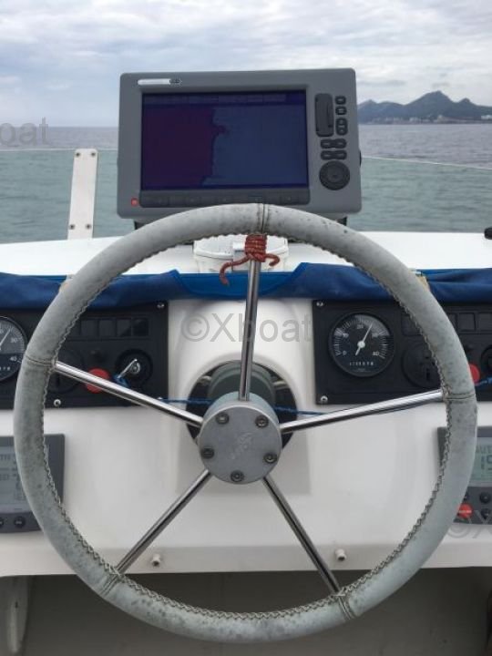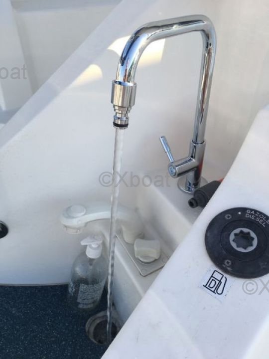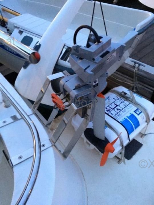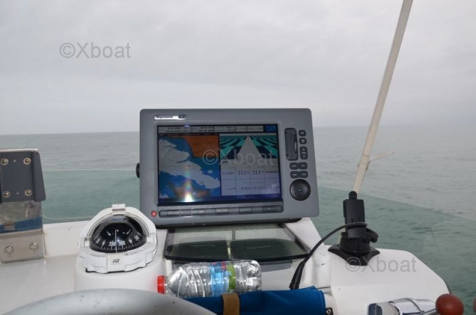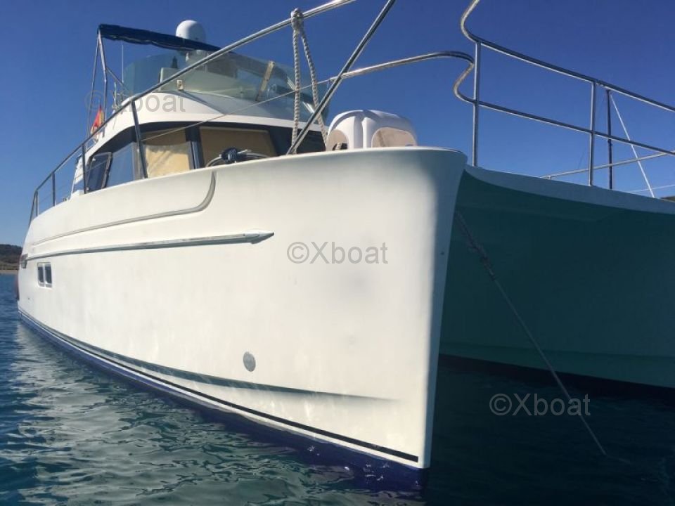Thanks to its robust construction in fiberglass-reinforced polyester, this catamaran is both lightweight and resistant, making it an ideal choice for navigating in shallow waters. The 20 HP engines ensure reliable and economical propulsion, allowing for comfortable cruising at 7 knots.