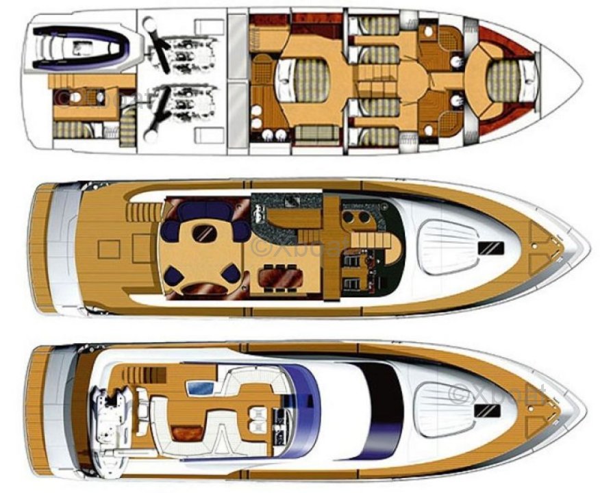 Equipment: The yacht is equipped with various modern technologies to ensure safe and pleasant navigation. You often find GPS navigation systems, radars, sonars, as well as advanced communication equipment. The Squadron 74 is also equipped with air conditioning systems, current generators, and desalinization systems for increased autonomy.