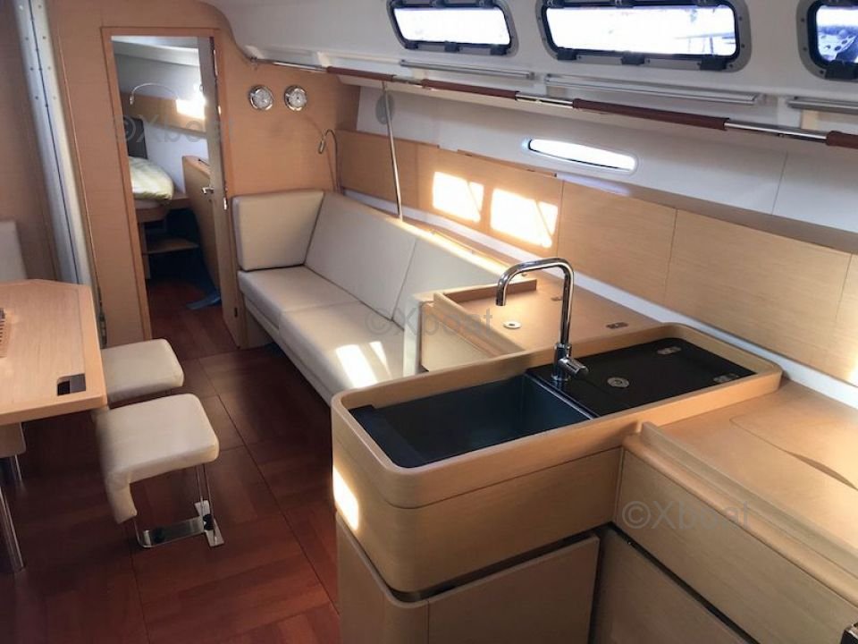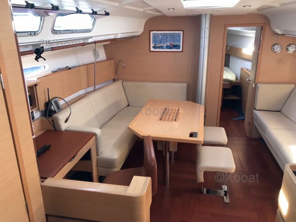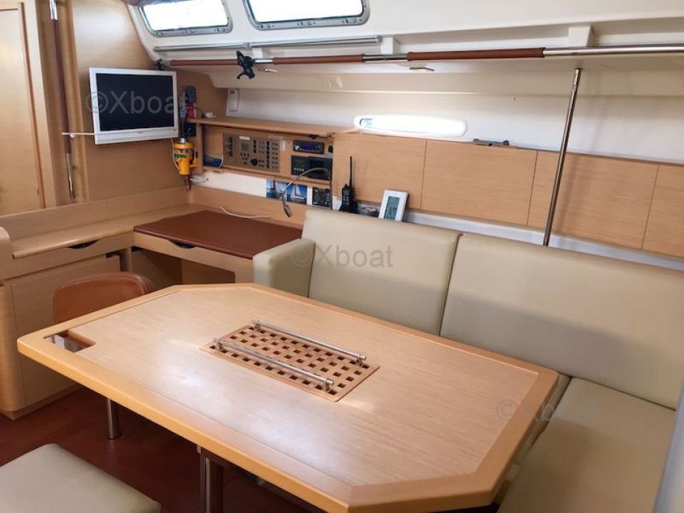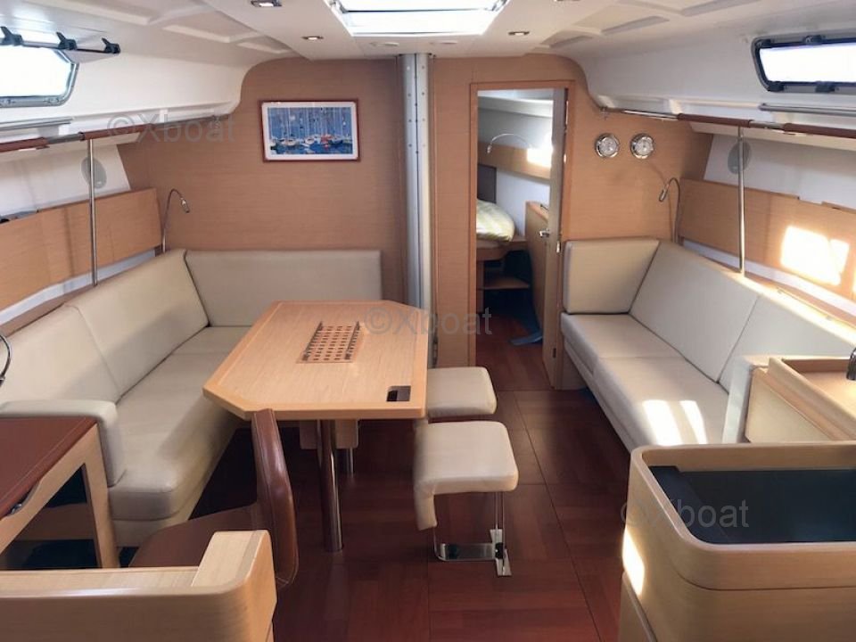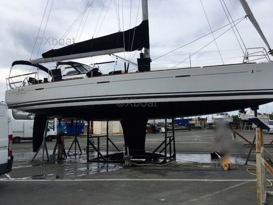 General Description: The First 45 is a cruising sailboat designed to offer an excellent compromise between performance and comfort. It is appreciated for its robustness, stability, and nautical qualities. The First 45 is ideal for long crossings and voyages with family or friends. Its polyester hull and Finot-Conq architecture make it a reliable and performing boat.