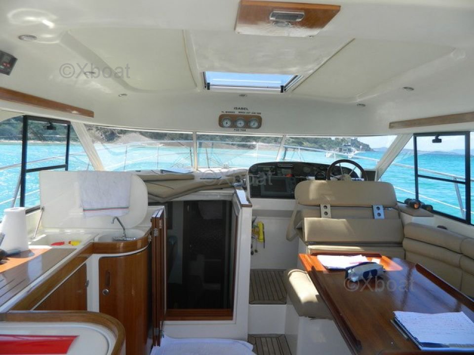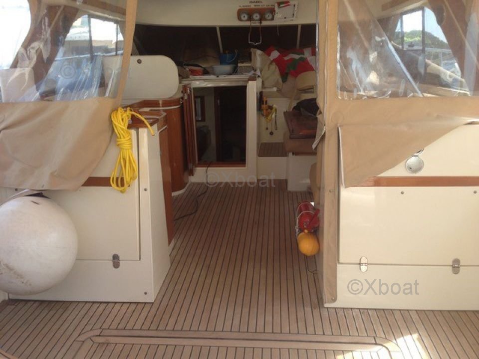 The interior of the ARCOA 39 MYSTIC is designed for comfort and functionality. It features two double cabins, a well-equipped kitchen, and a complete bathroom. The precious wood finishes and design details add a touch of luxury to the whole.