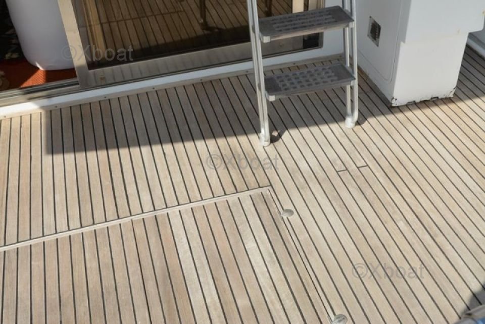 Comfort and Leisure: The deck of the San Lorenzo 48 is designed to offer relaxation and leisure spaces. It often includes a sunbathing area, an outdoor dining space, and sometimes even a Jacuzzi. The boat is also equipped for water activities, with options for jet skis, inflatable boats, and diving equipment.