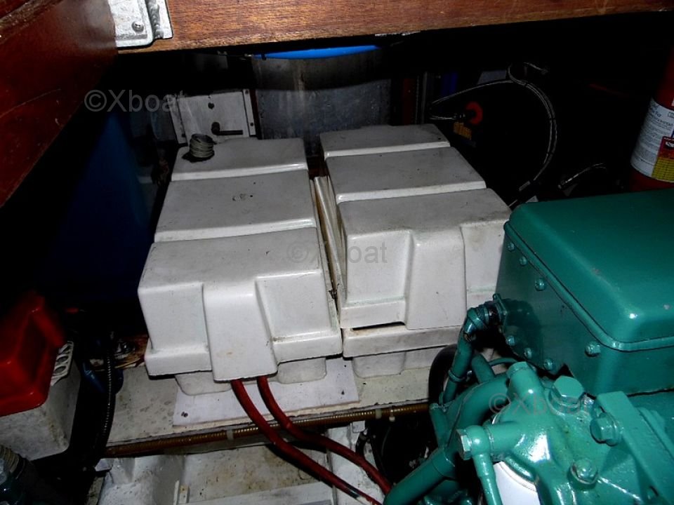 The battery bank consists of 6 batteries from 2020, maintained by 2 solar panels and a 2022 battery charger. The diesel tanks have a capacity of 1300 liters (2 x 650 liters) and the water tank 500 liters.